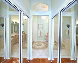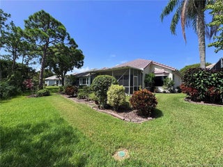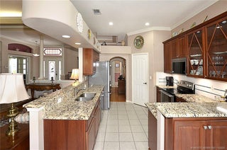 Gorgeous LARGE "Dіanа" modеl home іn desirable Jensеn Bеach Golf & Country Club! Featuring cathedral ceilings, crown molding, wood floors, French doors to the office & Tiffany glass windows surround the entry. The upgraded chef’s kitchen has Maytag SS appliances, granite countertops & newer cabinetry. The spacious main suite offers tray ceilings, his & hers walk-in closets, Roman tub & large walk-in shower. Formal dining room plus bay-window breakfast area overlooking a peaceful yard that backs to a preserve. Original lanai enclosed giving extra sq footage to the living area. Relax in the screened porch w/ newer hot tub. Split bedrooms, laundry room w/ Maytag W/D, LARGE TILED 2 1/2-car garage, room for your golf cart & built ins! ¼ mile to the golf club. Guard gated community w/ resort-style pools, tennis, clubhouse, bar/restaurant & championship 18-hole golf course. Minutes to beaches, marinas, parks, shopping in quaint Jensen Beach & historic downtown Stuart! ADT Sec Sys incl in HOA.
