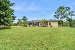 Ideal family home in a prime location! This 4BR/2.5BA CBS home offers 2,186 sq ft under air (3,129 total) on a 0.48-acre lot with cathedral ceilings and an open floor plan. Features include formal living & family rooms, formal dining, French entry doors, spacious kitchen with wood cabinetry, granite counters, and workstation. New roof (2021) and storm shutters for added peace of mind. The primary suite offers lanai access, his & her walk-in closets, and a luxurious bath with Roman tub, double sinks, granite counters, separate shower, and private toilet room. Also includes 3 guest bedrooms, guest & cabana baths, laundry room with washer & dryer, 2-car garage, screened lanai, open patio, and a large backyard with fruit trees and room for a pool. Conveniently located between I95 and FL Turnpike for easy commutes and just North of Becker road.