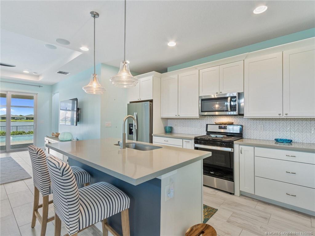 You must see this stunning former model home in Manderlie at Tradition! Nestled on an oversized 1/3+ acre cul-de-sac, this property boasts breathtaking lake views and unforgettable sunrises. Built in 2020, this former model home features high-end finishes throughout, including impact windows and doors, and countless designer upgrades. Enjoy resort-style living with your custom infinity-edge pool overlooking the serene lake, all within a fully fenced backyard perfect for entertaining or relaxing. With a modern open floor plan, this home offers bright, spacious living areas and seamless indoor-outdoor flow. Located in the heart of Tradition, residents enjoy access to shopping, dining, parks, and trails, just minutes from I95. Don't miss this opportunity to own one of Manderlie's most desirable waterfront homes!