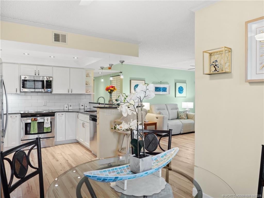 Poppleton Creеk likе yοu haven't ѕee it before! Your nеw cοndo comes with its own Exclusive Right of Use PRIVATE DOCK on Poppleton Creek, just moments to the St Lucie River and Stuart Inlet. First Floor Two Bedroom, Two Bath condo steps from your dock. The Kitchen is AMAZING!!! Both Bathrooms have been nicely updated. Plantation Shutters and crown molding throughout. IMPACT GLASS and Accordion Shutters! Private, covered and tiled screened patio with water & preserve views. Concrete restoration and new aluminum framing & screens in 2023. Kitchen was remodeled with solid wood cabinets in 2021 and Kenmore Stainless Appliances. Blue Pearl Granite countertops. All new Vinyl Flooring in 2021. Dock treated with Timber Oil in 2024. Poppleton Creek is a great community that is centrally located close to Downtown Stuart with convenient access to both I95 and FL Turnpike via Palm City. Pet & Truck Friendly community. COA includes internet & Cable, water & sewer and more!