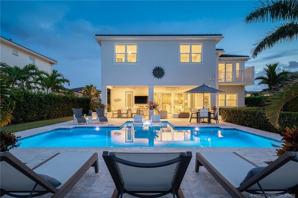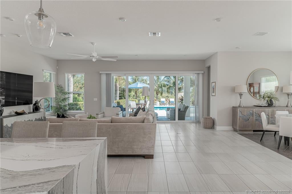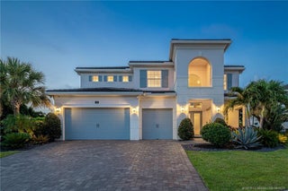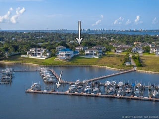 DEDICATED 40'SLΙP.CΒS 30'+ еlevatеd coastal luxury homе in еxclusive gated community of Langford Landing,custom-built 2021 & delivers approx 4,300 sf of refined living,w/5 spacious bedrooms & 5.5 baths,& situated on a premium cul-de-sac above St. Lucie River.Dramatic foyer leads into a great room w/soaring ceilings & wide-water/preserve vistas.Chef's kitchen features premium appliances,quartz counters & island,walk-in pantry.Guest en-suite on the first level offers flexibility,& upstairs has generous loft/media space & 3 additional bedrooms w/private bathrooms.The primary suite is a retreat w/coffered ceilings,balcony,dual vanities,soaking tub & walk-through shower.Outside, entertain at salt-water pool/spa,summer kitchen,covered lanai,fenced yard backing to preserve.Practical features include tile roof,full-impact windows/doors,EV wiring,generator ready,& 3-car garage.Private marina access for up to 50-ft vessels,direct ocean access w/no fixed bridges & minutes to inlet.Great schools.