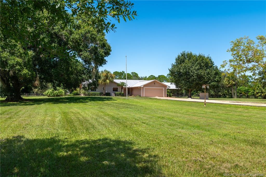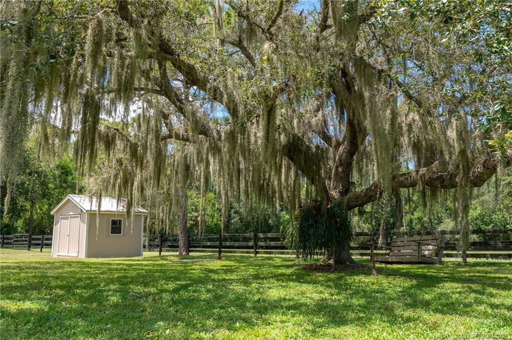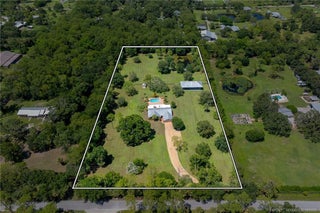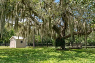 Welcome to this wеll-сarеd for 4BR/2ΒA home w/ extensivе outdοor amenities. Enter through a gated driveway to a fully fenced property shaded by mature oaks draped w/ moss. Set on 5 acres, the property offers privacy, space & equestrian potential. Enjoy outdoor living w/ a screened brick-paver patio, open-air pool & massive 40x70 pole barn (perfect for hobbies, vehicles, or equipment) + additional storage shed. Acreage allows for plenty of room for stalls, paddocks, or a riding ring. Inside: A stone fireplace w/ mantle, well-appointed kitchen w/ SS appliances, granite countertops & ample storage. Extras include breakfast nook w/ property views, formal dining, laundry w/ utility sink & storage, & spa-style sunken tub/shower finished in travertine w/ more property views. Peaceful lifestyle in a top-rated school district. A rare opportunity to own your very own private retreat in Palm City Farms!