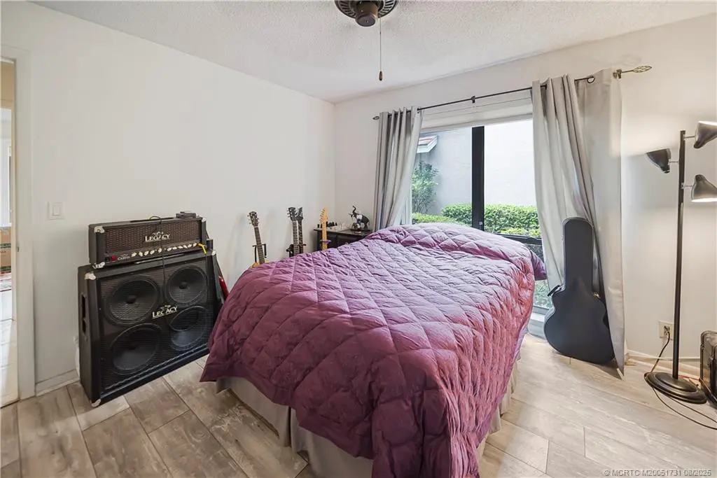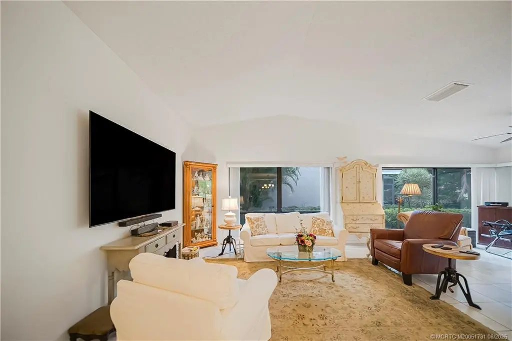 This 2/2/2 single family home situated on the beautiful Martin Downs golf course in the community of Starling Court in the private man gated Martin Downs Country Club in Palm City and conveniently located near the entrance to the Turnpike.The lot is one of the larger ones in the community and has lush landscaping.The home has 20x20 tile in the living areas and laminate in the bedrooms. The kitchen is state of the art and very dramatic with it’s beautiful custom wood cabinets with granite counter tops, country sink w/ turn on by touch faucet, pantry w/ 2 roll out shelves and a cabinet w/1.There is a new refrigerator and an extra side piece that stays. The living room has a 98in tv which, also, stays, an enclosed sun room w/ Hunter Douglas Window Treatments and the dining room has a built in buffet. The main bedroom has a pocket door for bathroom privacy, a picture window w/2 lower windows that open to allow fresh air and an organized walk-in closet. The home has accordion shutters.