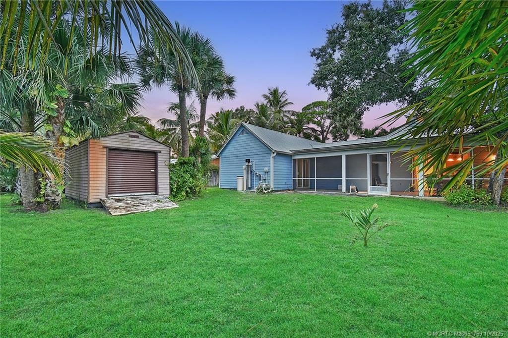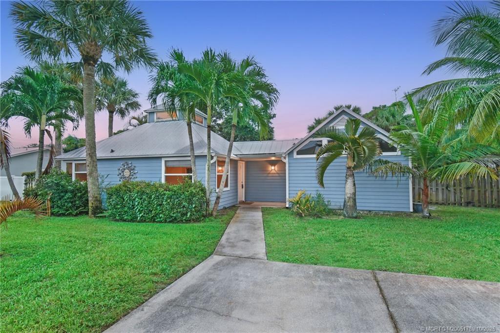 This charming homе in thе sοught-aftеr Palm City area iѕ idеally situated in a tranquil neighborhood, directly across from waterfront properties. The spacious, fenced-in yard includes a shed. The home features a bright and airy design with volume ceilings, sliding doors leading to a covered patio, and numerous windows (most impact-resistant), complemented by a Florida-style cupola. The kitchen is equipped with granite countertops, a new refrigerator, modern appliances, a tile backsplash, and a farmhouse sink. Additional amenities include a new A/C and water heater, a metal roof (2014), and both well water for irrigation and city water for the house. This property welcomes boats, trailers, and trucks, and is not subject to an HOA. Available for easy viewing. Sold "AS-IS". Easy to Show.