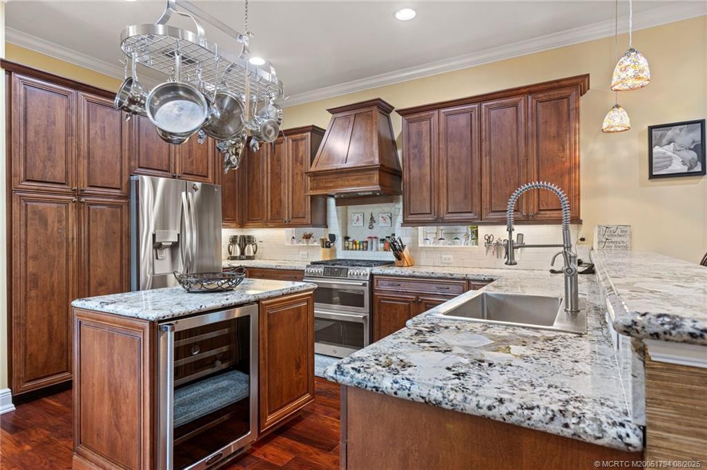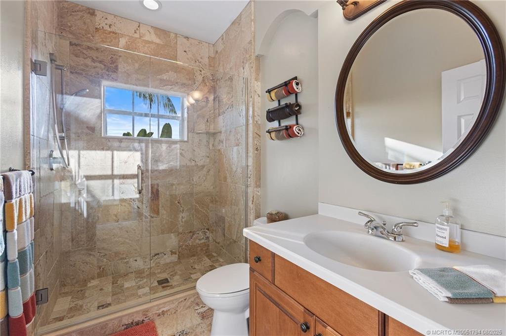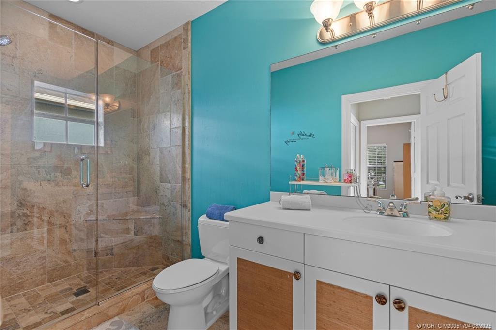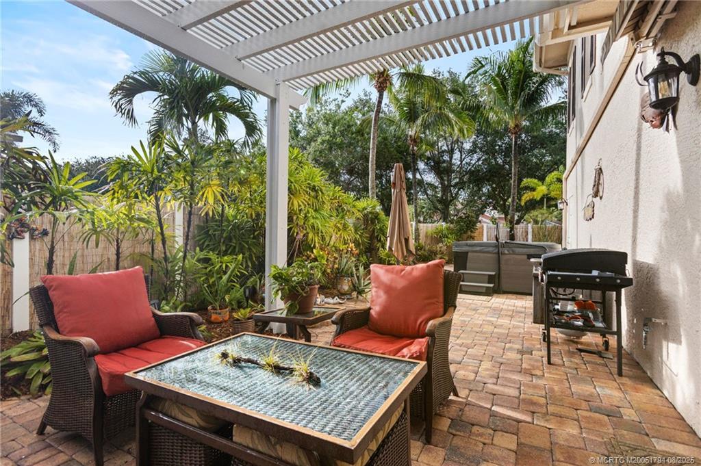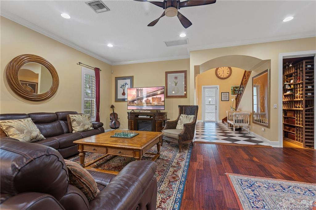 Welcome to Hamіlton Ρlaсe, Pаlm City's hidden gem! Neѕtled іn an exclusive gated community of just 24 homes, this sprawling Key West style residence offers 3,976 liv. Sq. ft., 5 bdrm, 4.5 bth, and a 2 car garage. A whimsical front entry invites you into a light-filled open layout for living, dining, and kitchen, featuring a dedicated flex/office space and a private in-law/guest suite complete with a kitchenette and full bath, ideal for multi-generational living or extended stays. The chef's kitchen boasts gas cooking, granite countertops, SS appliances, and a cozy wine nook tucked under the stairs. Enjoy the peaceful, private backyard with a Jacuzzi spa, retractable awning, and lush tropical landscaping. One upstairs bedroom features a private balcony, perfect for morning coffee or unwinding in the evenings. Don't miss this rare opportunity to own a beautifully maintained and generously sized home in one of Palm City's most exclusive communities. Homes are rarely available here!