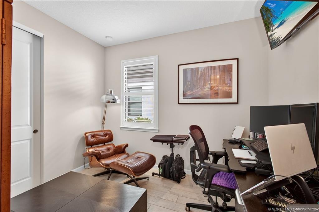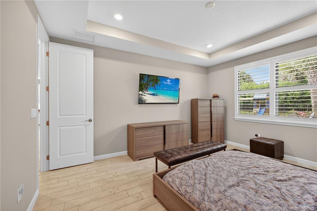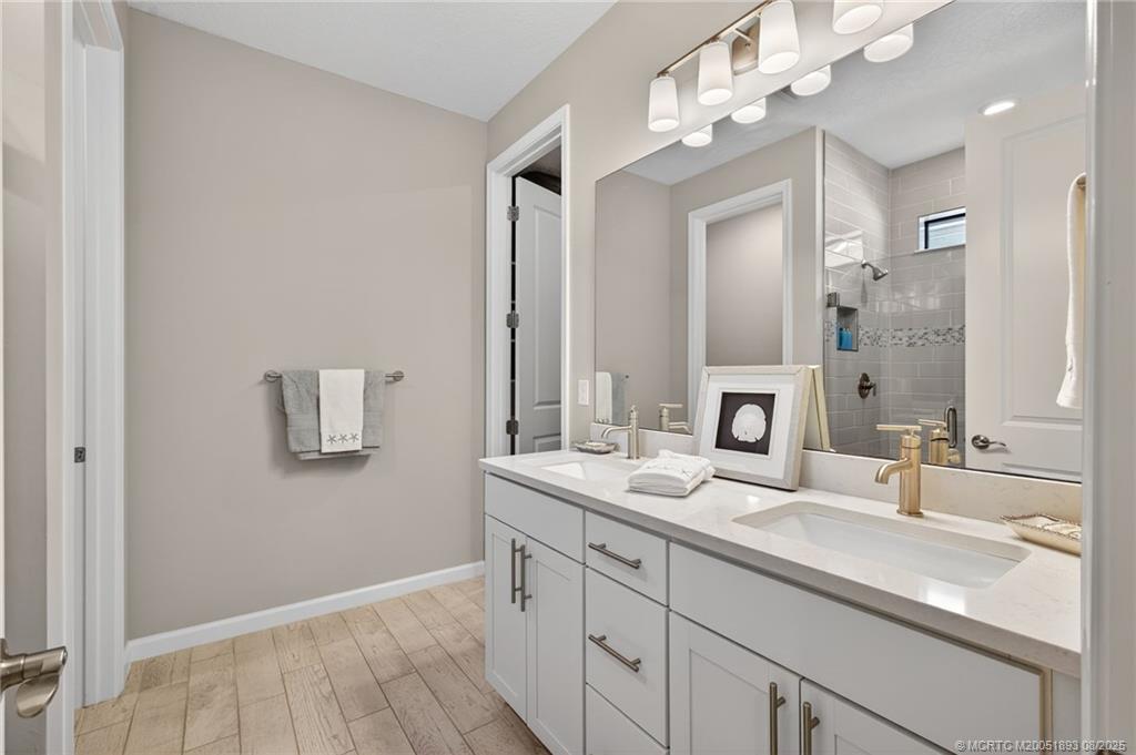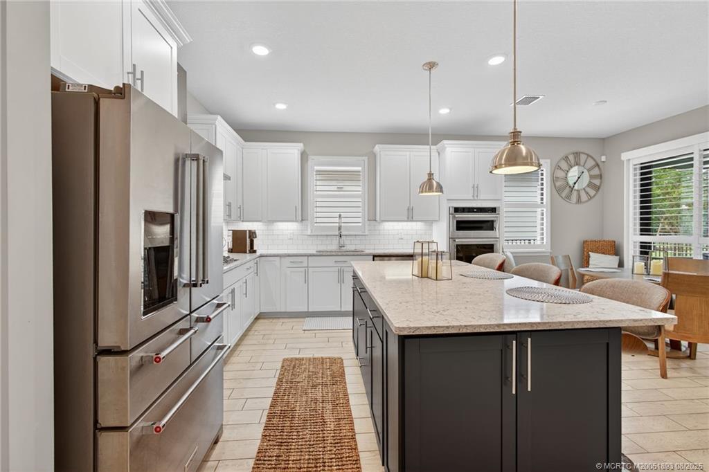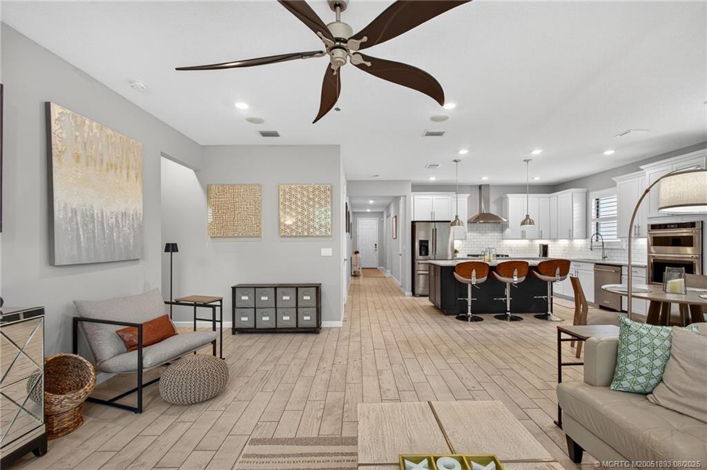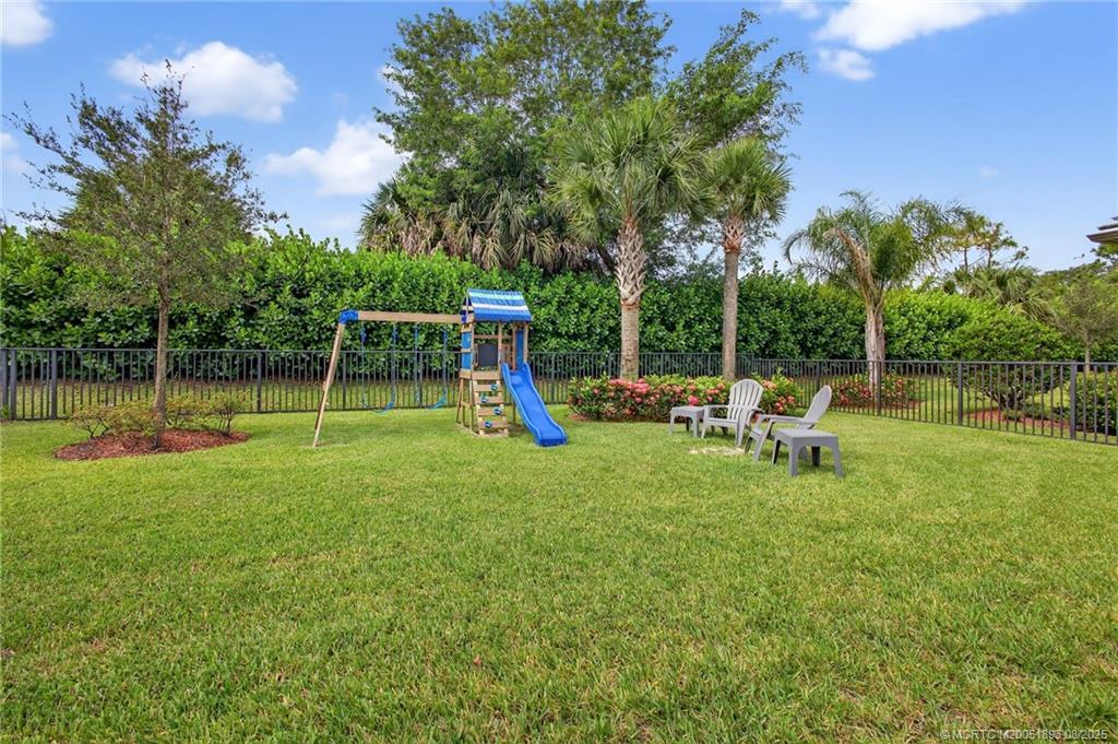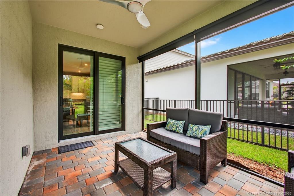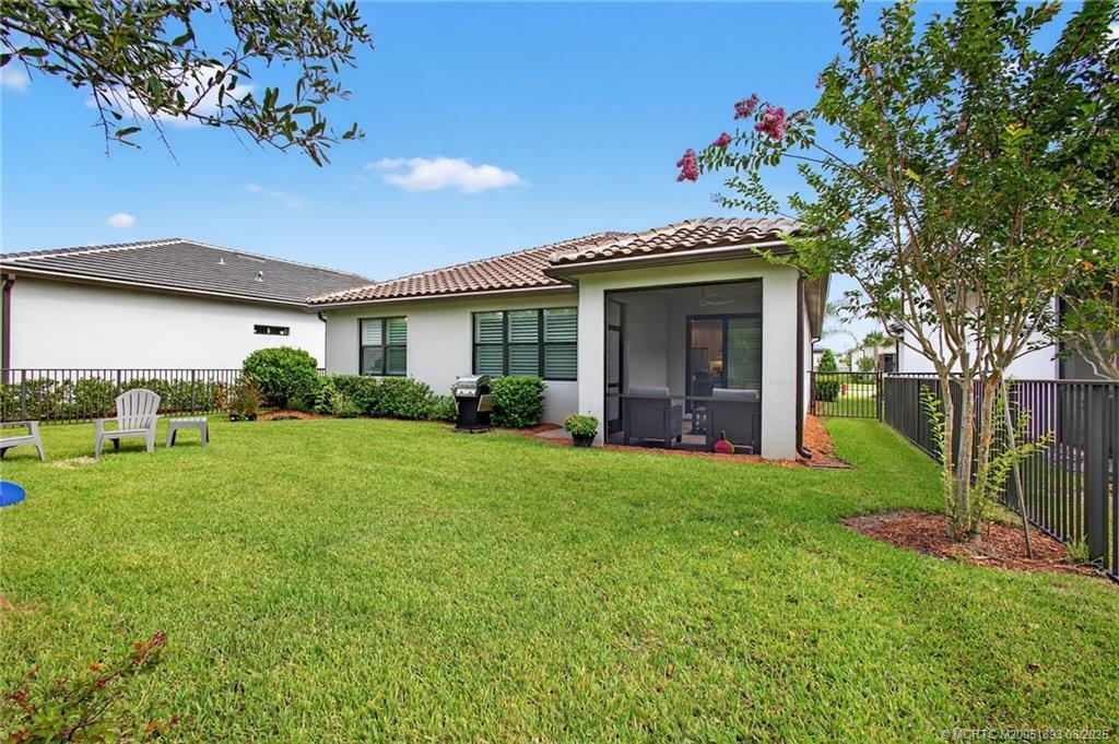 Step into this bеautіfully mаintaіned 4-bed, 2-bath smart homе in thе gated community of Veranda Gardens. This elegant residence features wood-look tile, plantation shutters, and a chef's gourmet kitchen with a custom island, granite counters, subway tile, gas range/hood, and stainless-steel appliances. The open-plan design is ideal for family life, enhanced by smart home features: Sonos sound, integrated speakers, smart thermostat, and upgraded AC. Outside, the extended, screened patio with Wi-Fi/fan offers a safe space for outdoor fun. Storm-impact windows, in-home security system and California closets provide security and convenience for parents. Veranda Gardens is family-friendly, and residents can apply for highly rated Martin County Schools. Community amenities include lap pool, clubhouse, fitness center, tennis, and pickleball courts. Everything you need for an active and connected lifestyle is located just minutes from a new hospital, shopping, dining and top-rated schools.