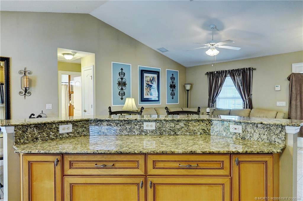 Finally an affordable CBS 3 bedroom, 2 bath, 2 garage home with custom pool. Mosiac dolphins, swim out, with custom tile. House can be purchased unfurnished as priced, other furnishings can be purchased separately, or as package separate from home. Great room concept with open living room, dining and kitchen great for entertaining. Kitchen island with granite countertops, custom wood cabinets, lots of storage. Split bedroom plan away from main bedroom, large walkin closet.