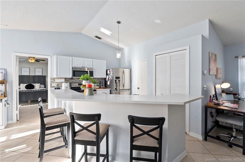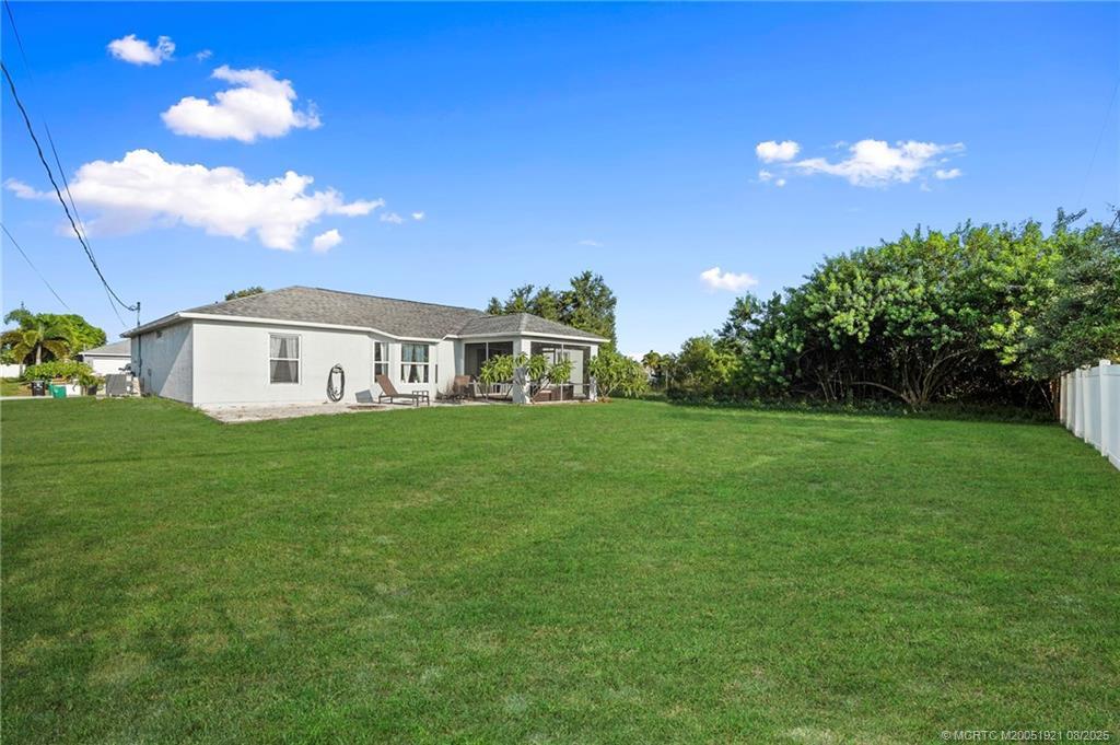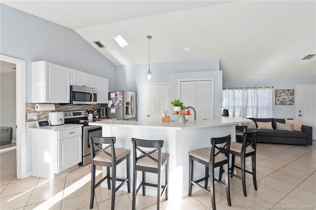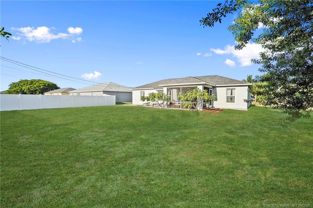 Fall in love with this ѕolіd cοncretе block 3-bedroom, 2-bath hοme thаt perfectly blends comfort, style, and functionality. Step inside to an inviting open floor plan featuring high ceilings, large diagonal-set tile, and updated bright coastal white kitchen with quartz countertops, stainless steel appliances, pantry and crisp white cabinetry. The thoughtful split-bedroom layout is perfect for families, with two spacious bedrooms and a guest bath with new vanity on one side of the home, & a private primary suite on the other. The master retreat includes a large walk-in closet & updated vanity in the master bath! Enjoy FL living with a screened & covered patio plus a large backyard, offering privacy & plenty of room to play, garden, or relax. Centrally located in the heart of Port Saint Lucie, this home is close to Becker Road, schools, shopping, dining, and I-95, with quick access to all major highways for easy commutes. This home truly checks all the boxes, schedule your showing today!