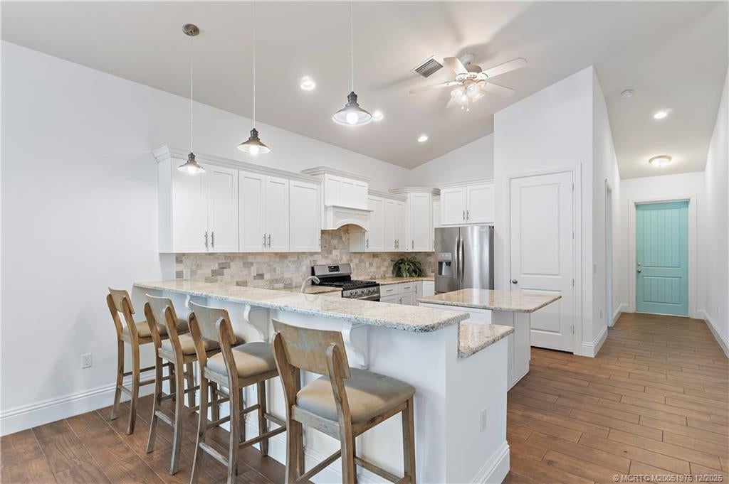 BOATER'S PΑRADΙSΕ! Thiѕ NEWLY PAINΤED Ρalm City property w/ NO HOA marries modern luxury and practical design. The open-concept living, high-end finishes, and solid construction quality is courtesy of the Medalist Building Group (built 2018). Stove updated to gas w/ wooden hood/vent. The property boasts 4 beds/3 FULL baths, granite countertops throughout, stainless steel appliances and kitchen pantry w/ custom shelving. The elegant master suite has double trey ceilings, his/her walk-in closets w/ custom shelving, dual sinks & separate tub & spa-like shower. Not to mention it also has a built-in office/studio (A must see!). Plantation Shutters throughout. Impact glass & metal roof for security & low maintenance. Covered patio & wooden deck in backyard. Fully fenced. NO HOA! Park your boat in the driveway and then trailer it down the street to the boat ramp. Walking distance to schools/parks/public boat ramp & shopping. INSIDE OF HOUSE BEING PAINTED WHITE THRU OUT-wall unit removed.