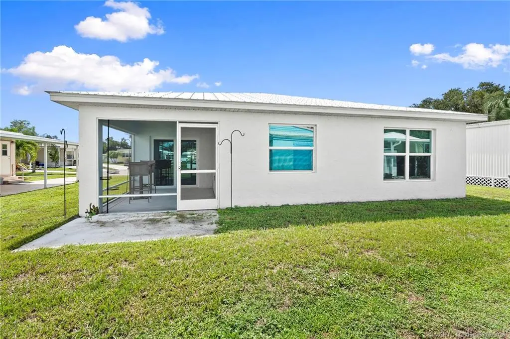 Welcome to Spanish Lakes. An active 55+ community with resort-style amenities. This lovely concrete block home with metal roof and impact windows, offers security, comfort and a low maintenance lifestyle. Situated on a quiet cul-de sac the property has tile throughout the main living area, large open kitchen with granite countertops and SS appliances, 1 bedroom with ensuite bath, a den/bedroom option & 1/2 bath. Land Lease is $599 per month. Residents have access fantastic amenities such as golf, tennis, pickleball, heated pools, shuffleboard, gym/fitness & clubhouse. FAQs: https://spanishlakes.com/faqs.