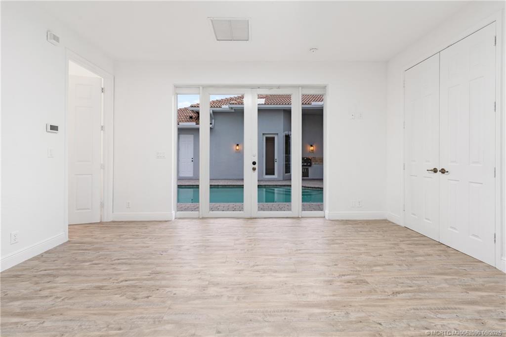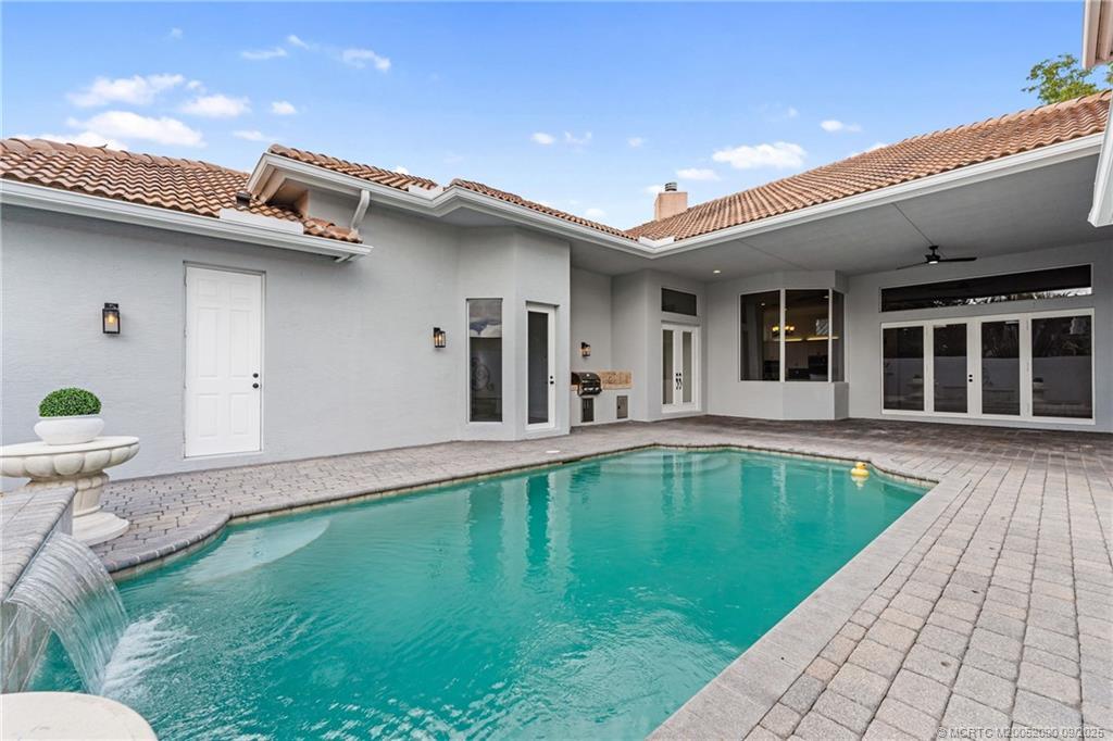 Welcome to your οwn prіvatе sanсtuary—an elegant courtуard рool home with guest house, perfectly positioned on over a 1/2 acre with serene golf course and lake views. Step inside the gates of your courtyard where the waterfall pool and summer kitchen awaits. The main residence offers 3 spacious bedrooms, 2.5 baths, and a 3-car garage, while the guest house opens to the poolside retreat—perfect for multi-generational living, hosting guests, or enjoying quiet mornings in privacy. Inside, the gourmet kitchen features stainless steel appliances, double wall ovens, granite counters, and a butler’s pantry. The primary suite is a true escape, complete with a cozy sitting area, jetted tub, and a dream closet. A gas fireplace and luxury vinyl plank flooring add warmth and style throughout. Set within the desirable, guard-gated community of Cobblestone at Stuart West, this home offers both peace and convenience. Start living the resort lifestyle you’ve been dreaming of.