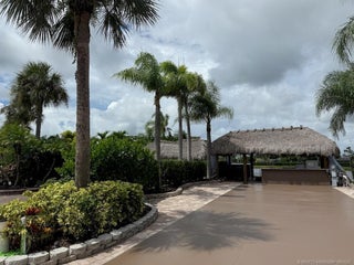 Discover the ultimate RV living experience with this lot, featuring a spacious L-shaped tiki hut and top-of-the-line amenities. The lot backs onto the large, natural lake and includes additional landscaping, ensuring a serene and secluded setting. Contemporary pavers, raised landscape walls, and mature plantings create a welcoming and polished look and the large tiki hut built in 2021 provides outdoor living space and features an outdoor Kitchen with composite cabinets featuring slide-out shelves, soft-close doors, and drawers and sleek granite countertops and a bar top, it's a chef's paradise with the Magic Chef 4-burner gas range with convection oven and Magic Chef countertop microwave and a Samsung stainless steel refrigerator with ice maker. The Tiki has a dedicated 60-amp circuit, tankless water heater, a 72" remote ceiling fan with light, flat mounted 55” flat-panel TV and eisenglass curtains. Sold fully furnished, including a removable dog fence and large storage unit.