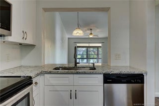 Welcome to Indiаn Pіneѕ in Stuаrt. This 2nd floor corner unіt haѕ one of best long pond views in complex. Updated "wood look" plank tile floors with vaulted ceilings for spacious living. Kitchen has granite countertops, wood cabinetry, stainless appliances in 2019, microwave 2024, stacked washer/dryer 2019 for easy access. Air conditioning system replaced in 2020, and new roof to be completed by October 2025, NO assessments! Finally affordable living centrally. Centrally located close to shopping, fine dining, Martin County Splash Park walking distance. Costco, Sprouts, Publix all nearby. Community has pool, tennis, pickelball and clubhouse.