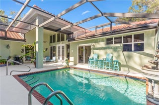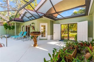 LAKEVIEW courtyard-style home, breathtaking views of the rookery. 2 bedrooms, a den (possible 3 bedroom), 2 full baths, half bath. Screened-in pool within courtyard, plus screened patio overlooks the lake. Kitchen has white cabinets, stainless steel appliances. Volume ceilings, and wood flooring. Primary suite has walk-in closet, dual sinks, a soaking tub, separate shower. Detached guesthouse is a perfect space for visitors. 2-car garage, plus golf cart garage, and AC (2019). Harbour Ridge is a private, mandatory membership community featuring two 18-hole golf courses, 9 Har-Tru tennis courts, pickle-ball courts, fitness facility w/ pool, waterfront clubhouse w/ 3 dining rooms, 2-mile riverfront walking path, biking, yacht club, and marina with boat slips available for additional fee. $125,000 Equity ($1,000 Refundable) due at closing. Monthly HOA Fee includes Club Dues, Trail Fees, POA, Village HOA, Capital Funds Fees & appropriate taxes.
