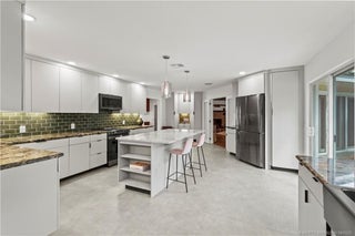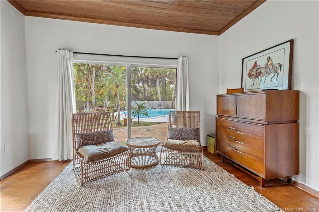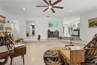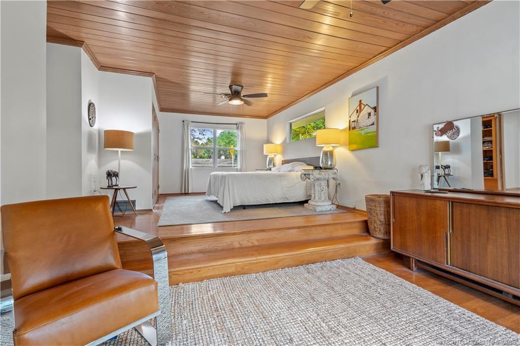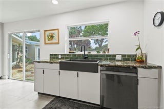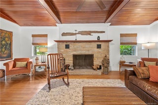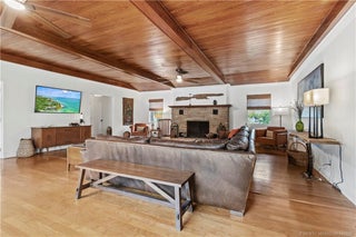 Stunning & custom 5BR, 4.5BA pool home on .76 acre, just 10 min from the beach & waterfront dining. Perfect for multi-family living, the split floor plan offers comfort & privacy. Inside boasts oak wood, terrazzo & Brazilian red cherry floors, cypress ceilings, crown molding, recessed lighting, & an updated kitchen w/ granite & stainless. Custom details & craftsmanship shine throughout every room. Outdoors, enjoy a lagoon-style pool w/ diving board, beach area, summer kitchen & cabana bath. Impact glass windows, metal roof, 2 new ACs, 2 laundry rooms, 3-car garage, wood-burning fireplace, 2 new water heaters & flagstone patio complete this one-of-a-kind retreat. A truly beautiful home designed for both everyday living & unforgettable entertaining. This exceptional property blends elegance & comfort, offering a rare opportunity to own a spacious, private haven in a prime location.