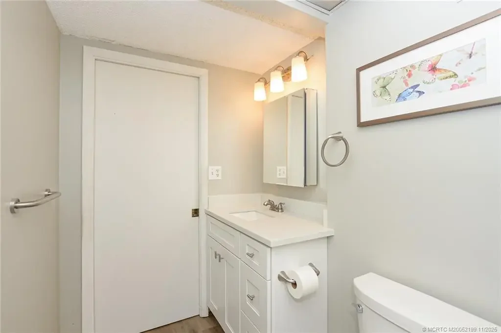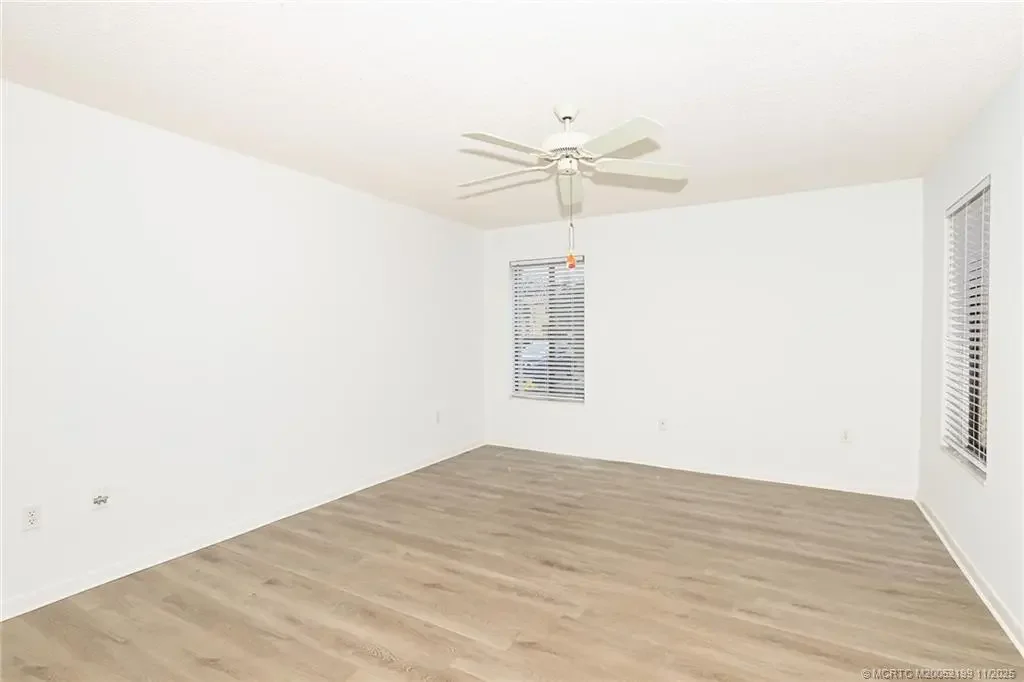 First floor 2BR/2BA condo with a bonus room and wonderful golf view! Nicely updated kitchen with quartz countertops, newer vinyl flooring and remodeled baths. Roof 2021, AC 2024, HWH 2019. Accordian Storm shutters, plumbing and electrical updated as well! Miles Grant Country Club is true Florida living at its finest with a lifestyle of golf, pickleball and tennis, bocce, shuffleboard, game nights, dining, and many weekly activities! Outdoor enthusiasts will love the river access with a fishing pier, kayak launch, and on-site kayak storage.