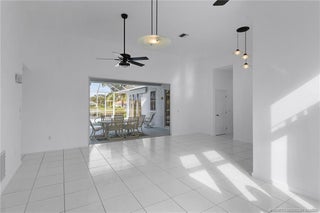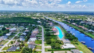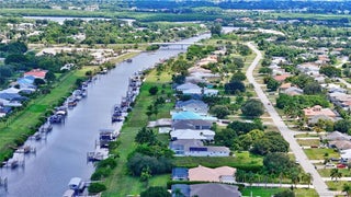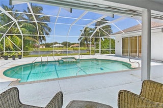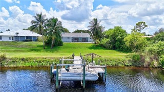 Located in the coveted SouthBend area and situated on nearly 2/3 of an acre, this 3BR, 3BA, 3CG pool home has the potential to be five bedrooms due to an additional office and media room. All rooms are generously sized. Double front doors open to views of the screened pool/spa as the eye carries further to the dock located on a wide, deepwater canal with a 12,000 pound lift. Sleek white cabinets in the kitchen, two sinks, and two stoves (one gas, one electric) are a cook's dream. Large wine fridge can stay or be removed. The kitchen is open to the family room, which includes a fireplace Primary bedroom and office both overlook the covered pool. Laundry room doubles as full cabana bath.Massive garage can house three cars and more.Whole-house generator. Property includes palm trees, gardenia bushes, and mango trees. One-owner home has great natural light throughout and loads of potential. Minutes away from Jessica Clinton Park and and C-24 Canal Park.