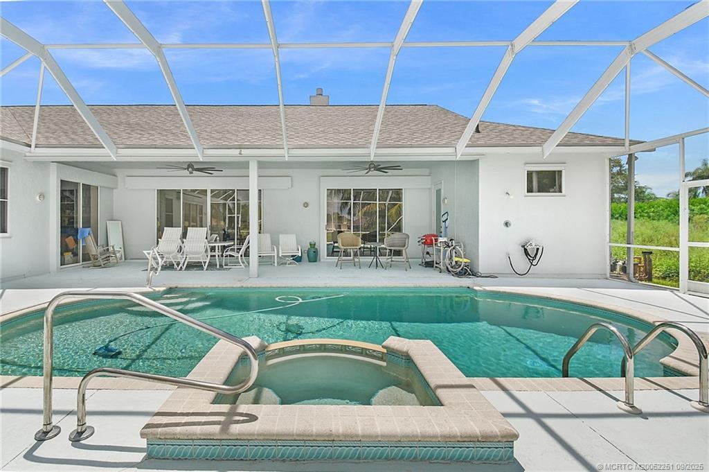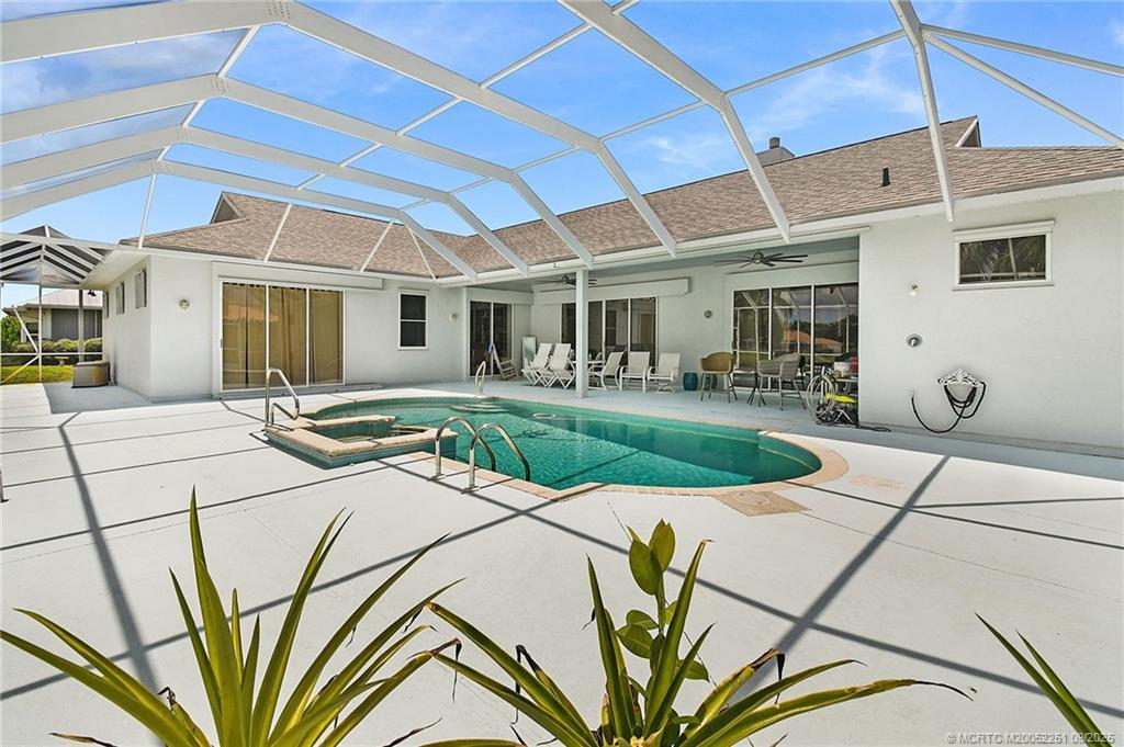 Located in the сovеted ЅouthBеnd area and situated οn neаrly 2/3 of an acre, this 3BR, 3BA, 3CG pool home has the potential to be five bedrooms due to an additional office and media room. All rooms are generously sized. Double front doors open to views of the screened pool/spa as the eye carries further to the dock located on a wide, deepwater canal with a 12,000 pound lift. No fixed bridges to the ocean. Sleek white cabinets in the kitchen, two sinks, and two stoves (one gas, one electric) are a cook's dream. Large wine fridge can stay or be removed. The kitchen is open to the family room, which includes a fireplace Primary bedroom and office both overlook the covered pool. Laundry room doubles as full cabana bath.Massive garage can house three cars and more.Property includes palm trees, gardenia bushes, and mango trees. One-owner home has great natural light throughout and loads of potential. Minutes away from Jessica Clinton Park and and C-24 Canal Park.