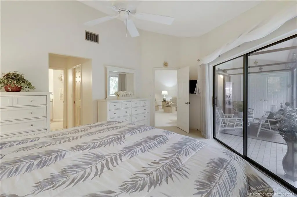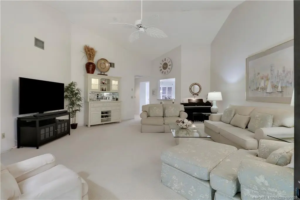 Welcome to this immaculate 2 bedroom, 2 bath condo on the 2nd floor of a highly desirable 55+ community conveniently located in South Stuart. This well maintained home offers a spacious and comfortable layout, with plenty of natural light and a serene atmosphere. The open living and dining area is ideal for relaxing or entertaining, while each bedroom provides ample space and privacy. The kitchen is updated with white cabinets and stainless steel appliances. Plantation shutters throughout. Extremely private lanai overlooking a multitude of trees. The community is beautifully landscaped with lush foliage, tranquil lakes, and walking paths that invite leisurely strolls. Residents enjoy access to a well equipped clubhouse with pool, hot tub, tennis and pickleball courts creating an active, resort like environment for those looking to enjoy their best years in comfort and style.