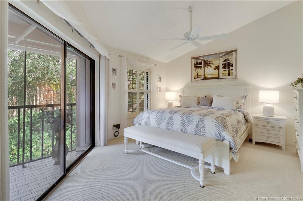 Welcome to this immaculate 2 bedroom, 2 bath condo on the 2nd floor of a highly desirable 55+ community conveniently located in South Stuart. This well maintained home offers a spacious and comfortable layout, with plenty of natural light and a serene atmosphere. The open living and dining area is ideal for relaxing or entertaining, while each bedroom provides ample space and privacy. The kitchen is updated with white cabinets and stainless steel appliances. Plantation shutters throughout. Extremely private lanai overlooking a multitude of trees. The community is beautifully landscaped with lush foliage, tranquil lakes, and walking paths that invite leisurely strolls. Residents enjoy access to a well equipped clubhouse with pool, hot tub, tennis and pickleball courts creating an active, resort like environment for those looking to enjoy their best years in comfort and style.