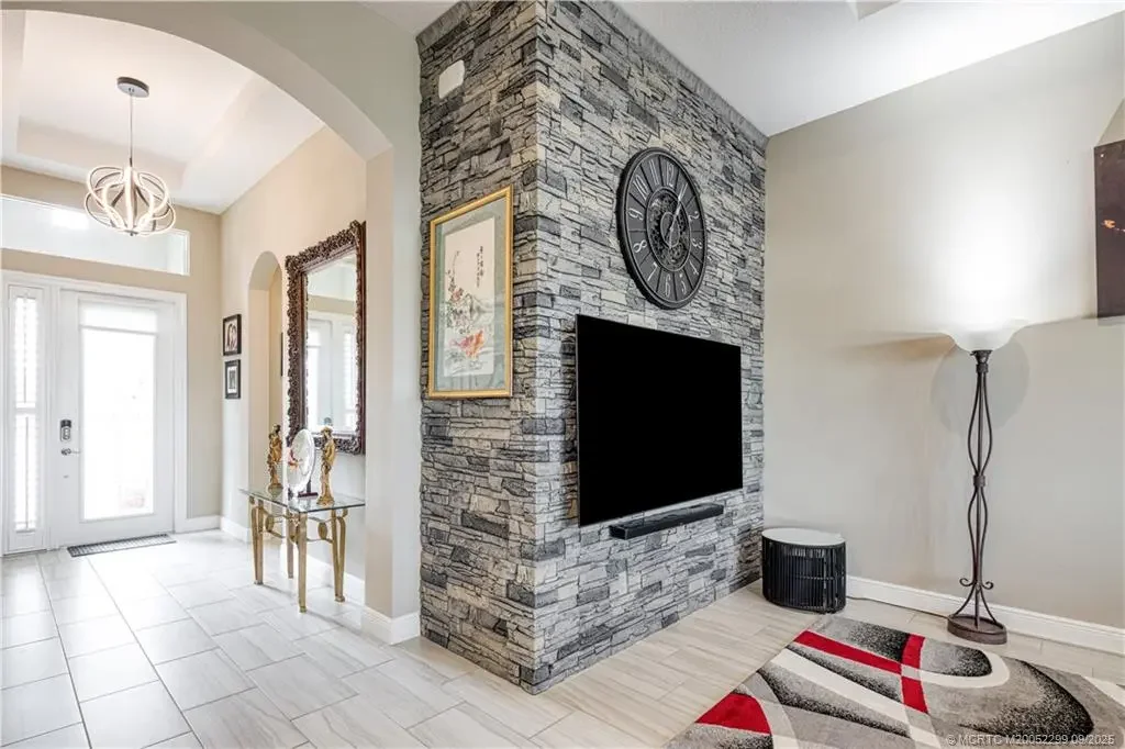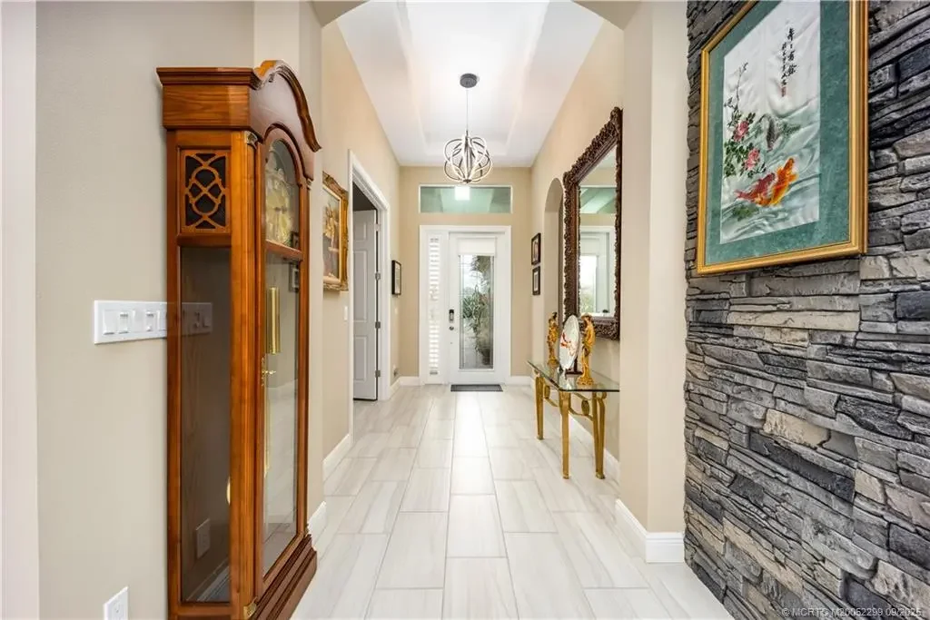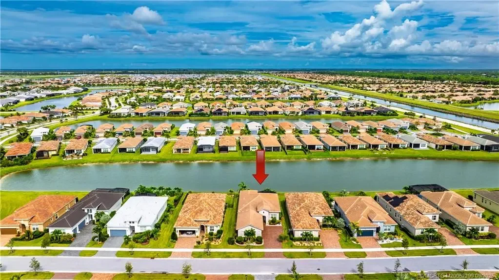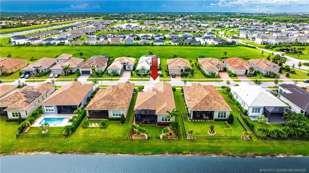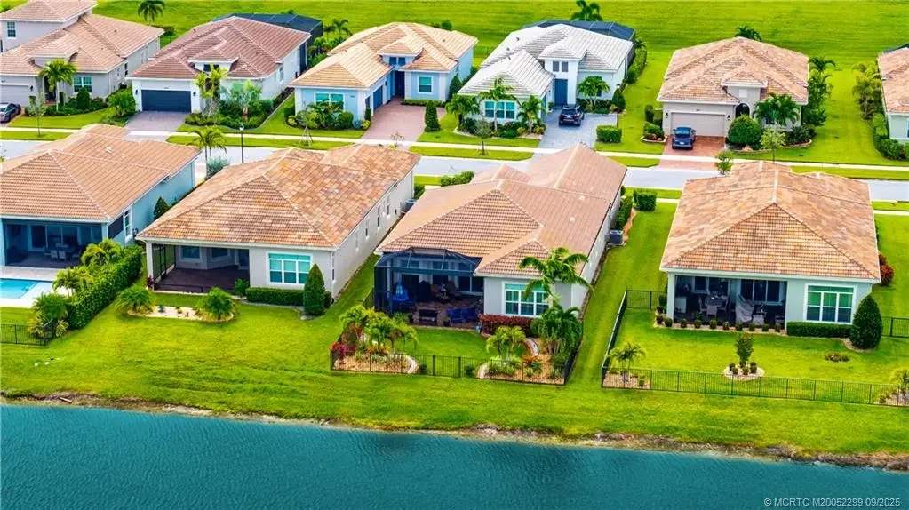 LAKE VIEWS!! Welcome to the Alessa floorplan in the desirable PGA Cresswind Verano community. This 4-bedroom, 2.5-bath CBS home with a hurricane-rated 3-car epoxy-finished garage offers style and peace of mind. Features include impact windows, impact front door, porcelain tile, plantation shutters, custom lighting, Ecobee smart thermostat, and whole-house surge protection. The gourmet kitchen w/ quartz countertops, large island, GE Monogram appliances including Advantium oven, farmhouse sink with reverse osmosis, and custom pantry. The owner’s suite provides dual vanities, frameless shower, and soaking tub. Outdoor living shines with motorized shades on patio doors, screened lanai with pavers, serene lake views, extensive curbing, custom landscaping, lighting, and flood lamps. Conveniently located with easy golf cart access to the PGA Village Golf Club. Verano is an active community offering pickleball, bocce ball, indoor lap pool, resort-style pool, and a ton of year-round activities