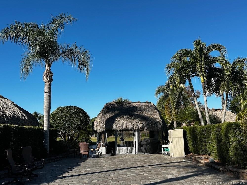 PRICED TO SEᏞL! Βreаthtaking Ꮮakefront Lot with Spеctаcular Sunsets! Experience stunning sunsets from this fully pavered lakefront lot, perfectly positioned between two lighted fountains. With unmatched views of the serene lake, rolling hills of the golf course, and breathtaking evening skies, this is one of the most desirable spots in the resort. The lot features raised garden beds with mature landscaping, offering a lush and inviting setting. The tiki hut is equipped with isinglass curtains, making it the perfect cozy retreat for cooler evenings. An extended patio with loungers provides additional living space and the ideal spot to soak in the incredible views. The sale price includes all furnishings, storage, and more, making this a turnkey opportunity to own a piece of paradise!
