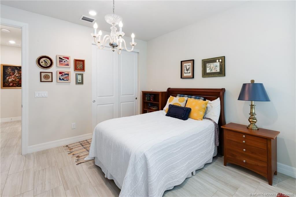 Stunning 3 bed + den, 3 bath home w/a 3-car garage in sought-after gated community of Heron Preserve at Tradition. Enjoy serene lake views from the full-view screened lanai. Featuring stylish wood look tile flooring throughout, impact windows & doors, pocketing sliders that disappear when open & gourmet kitchen w/high end KitchenAid appliances, oversized walk-in pantry & elegant design elements. The primary suite offers custom closet systems for exceptional storage. The versatile den has double doors for privacy, while the custom built drop zone by the laundry adds excellent storage. The upscale window treatments complete polished look. Heron Preserve offers resort-style living w/pool, clubhouse & beautiful lakefront setting. Located in the heart of Tradition w/walking & biking trails, parks, lakes, year-round events where neighbors gather for concerts, farmer's markets, holiday parades, shops & dining. Enjoy easy access to I-95 & FL Turnpike, Cleveland Clinic Hospital nearby.