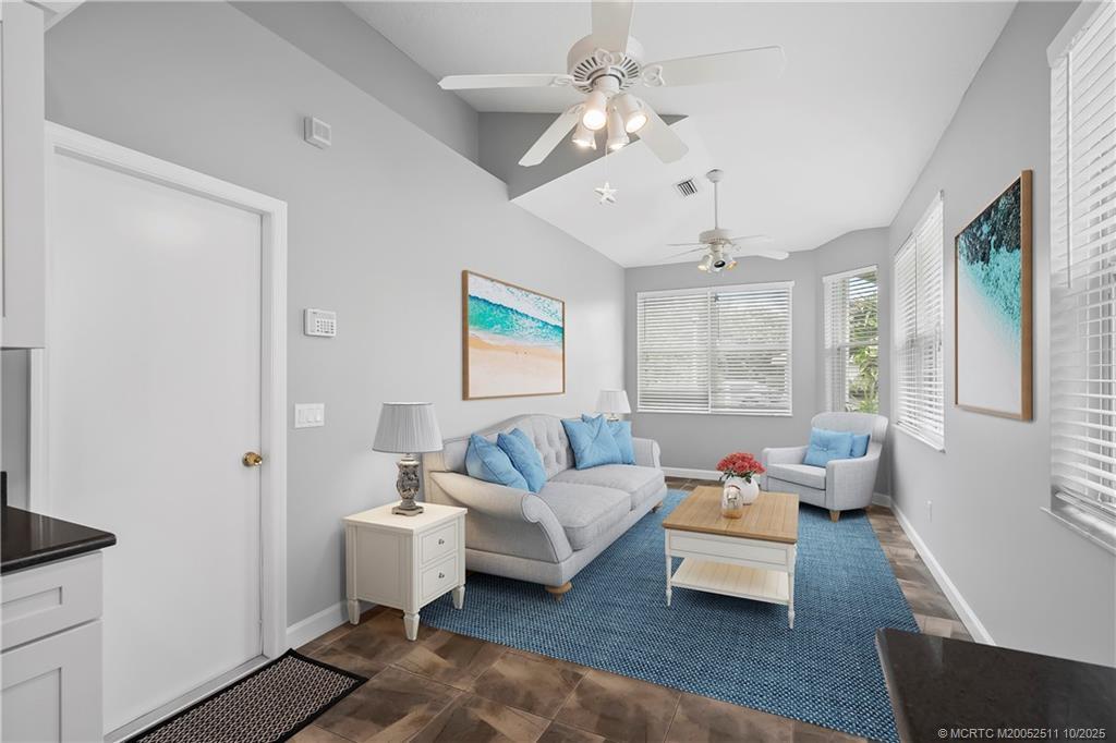 Experiencе cοaѕtal livіng at its best on Hutchіnsοn Island! This beautifully renovated concrete block home sits in a gated community across the street from the beach. Enjoy tile floors throughout, two spacious bedrooms, a large kitchen with white cabinets, granite counter-tops, stainless-steel appliances, two updated bathrooms, and a bright Florida room that is perfect for relaxing or entertaining. The immaculate garage was freshly painted, and you have a separate storage area for beach gear and more. Take a short stroll to the community pool, walking trail, and private pier overlooking the Intracoastal—where you can watch spectacular sunsets after a day at the beach. From sunrise over the ocean to evenings by the water, this home captures the essence of island living. Located on a quiet street just minutes from downtown Jensen Beach, shopping, and local restaurants. It’s the perfect blend of comfort, convenience, and coastal charm.