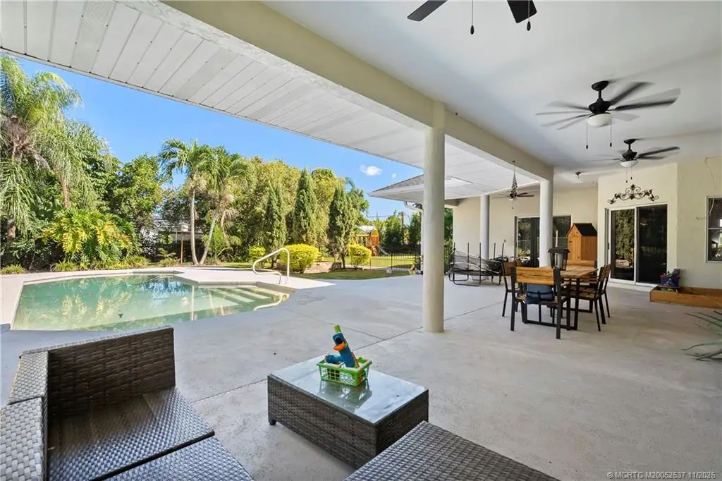 Tired of seeing the same cookie-cutter homes? This custom 3BR/3BA pool home on nearly half an acre breaks the mold! Nestled in the highly desired Morningside neighborhood, it offers space and comfort. Features include a custom double-door entry, extended driveway, and 9-ft ceilings throughout. Inside, you’ll find tile flooring, hardwood in all bedrooms, and an updated kitchen with stainless-steel appliances and a double convection wall oven. The split floor plan provides privacy with two bedrooms connected by a bath, plus a cabana bath leading to the pool. Living room offers surround sound system and theatre mood lighting. The primary suite offers a Jacuzzi tub and separate shower. Additional highlights include a 2-car garage, plenty of extra space for boat or RV parking, a well-maintained A/C system, and no HOA! Close to beaches, The Saints Golf, Sandpiper Bay Resort, and entertainment and shopping.