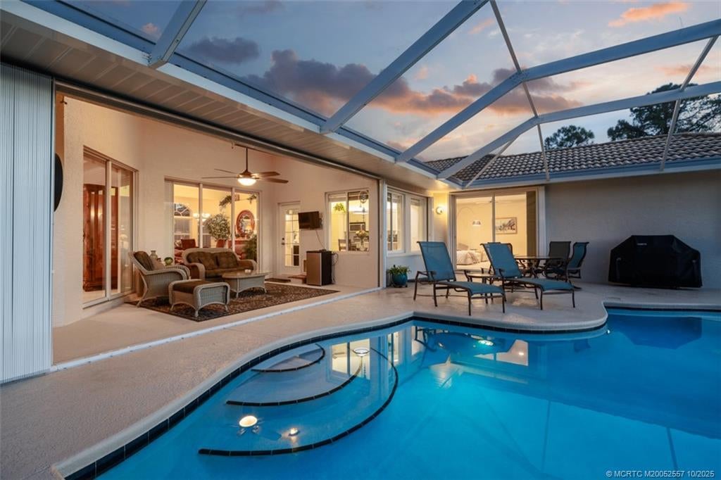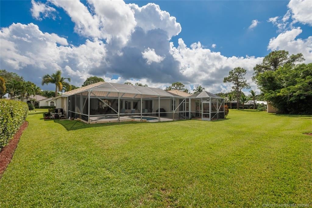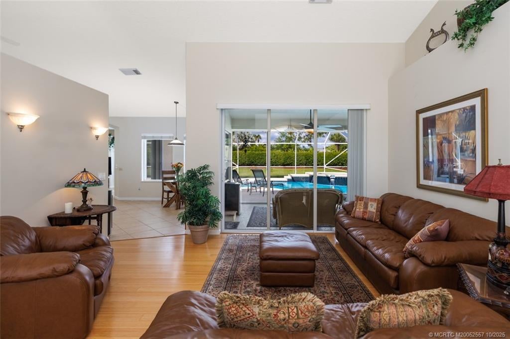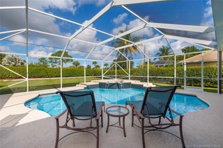 Welcome to this bеautіfully mаintaіned CBS 4-bedroom, 2.5-bаth homе in River Landing, a gated community in Palm City situated along the South Fork of the Saint Lucie River. The residence offers volume ceilings, a spacious living room, dining room, and family room—perfect for gatherings and entertaining. A convenient cabana half bath provides direct pool access. Recent upgrades include a new HVAC system (2023), Generac 22KW LP standby generator, and accordion hurricane shutters for peace of mind. Step outside to your private oasis featuring a heated saltwater pool & spa (new salt cell Sept. 2025), resurfaced pool/spa & Kool decking (2020), and lush six-foot hedges for added privacy. River Landing offers an unmatched lifestyle with an ocean-access community boat dock & ramp on the Saint Lucie River, RV/boat storage, tennis & pickleball courts, playground, park, and scenic walking trails. A-rated school district, with easy access to shopping, dining, I-95, and the Florida Turnpike.