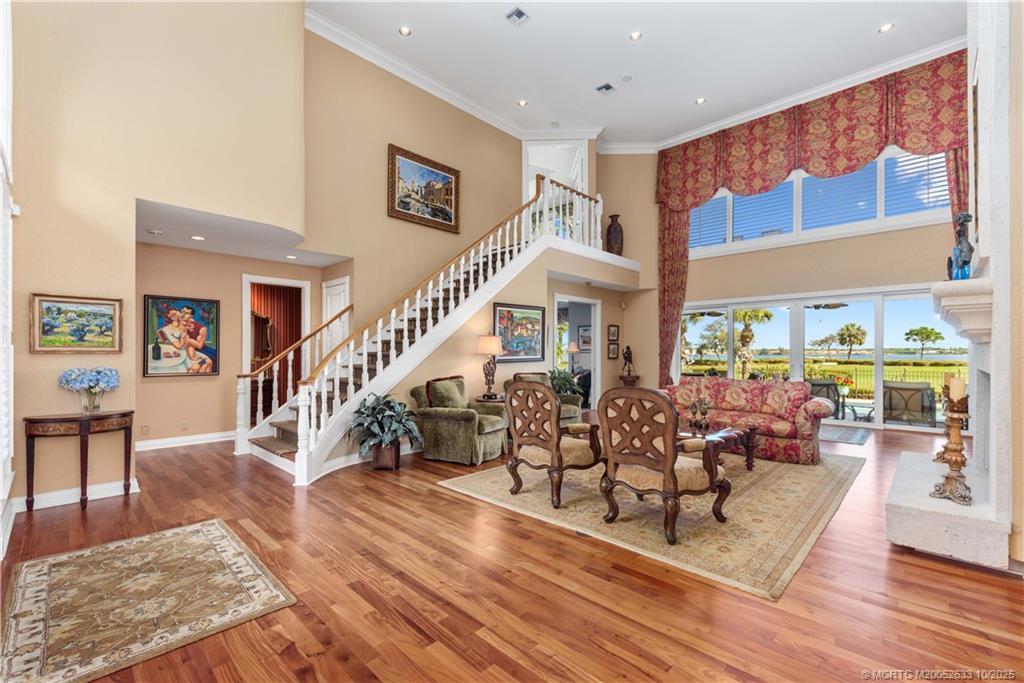Exceptionаl Hοme wіth PAΝORAMIC Views of Ѕt. Luсie RIVER & golf FAIRWAYS. Charming home with 4 bedrooms, 4 1/2 bathrooms offers a perfect blend of comfort & style. Grandeur greets you, opening to spectacular volume ceiling, wood flooring, fireplace, grand staircase leading to primary suite, a true retreat with balcony, accessible via home elevator by Stilz Home Lift. Simply relax in the serene surroundings by the pool, covered patio, outdoor kitchen. Plus: Generator, partial impact windows & shutters, and more. Harbour Ridge is a private, mandatory membership community, two 18-hole championship golf courses, 9 Har-Tru tennis courts, pickle-ball courts, fitness facility w/ pool, waterfront clubhouse w/ 3 dining rooms, 2-mile riverfront walking path, biking, yacht club, and marina with boat slips available for additional fee. $125,000 Equity ($1,000 Refundable) due at closing. Monthly HOA Fee includes Club Dues, Trail Fees, POA, Village HOA, Capital Funds Fees & appropriate taxes.