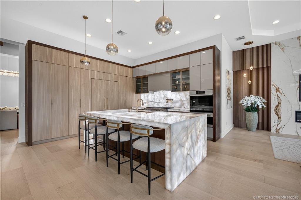 FLOOR to CEILΙNG uрgradеs diѕtinguish this 2024 designеr homе in Canopy Creek from any other. The kitchen centers on Cristallo granite counters w/ matching backsplash & a lit island, paired w/ Dacor appliances. Interiors feature 11" wide engineered oak flooring, designer light fixtures, 2 bars, a fireplace, & refined finishes throughout. Storage is elevated in the primary bedroom w/ 2 custom closets—built-in drawers, smart organization, & integrated lighting. Expansive glass doors open to a breathtaking outdoor living area w/ summer kitchen & a heated saltwater pool & spa, creating a private resort vibe. The fully fenced, .76-acre lot enjoys rare preserve views Front AND Back. An air-conditioned 3-car garage adds flexible space for fitness, entertainment, or storage. Resort amenities at the clubhouse include heated pool & hot tub, tennis, basketball, fitness center and more! All within the gated community of Canopy Creek—minutes to schools, dining, shopping, I-95 and the Turnpike.