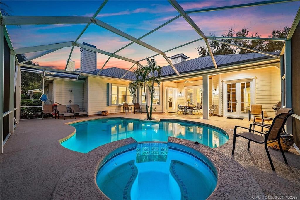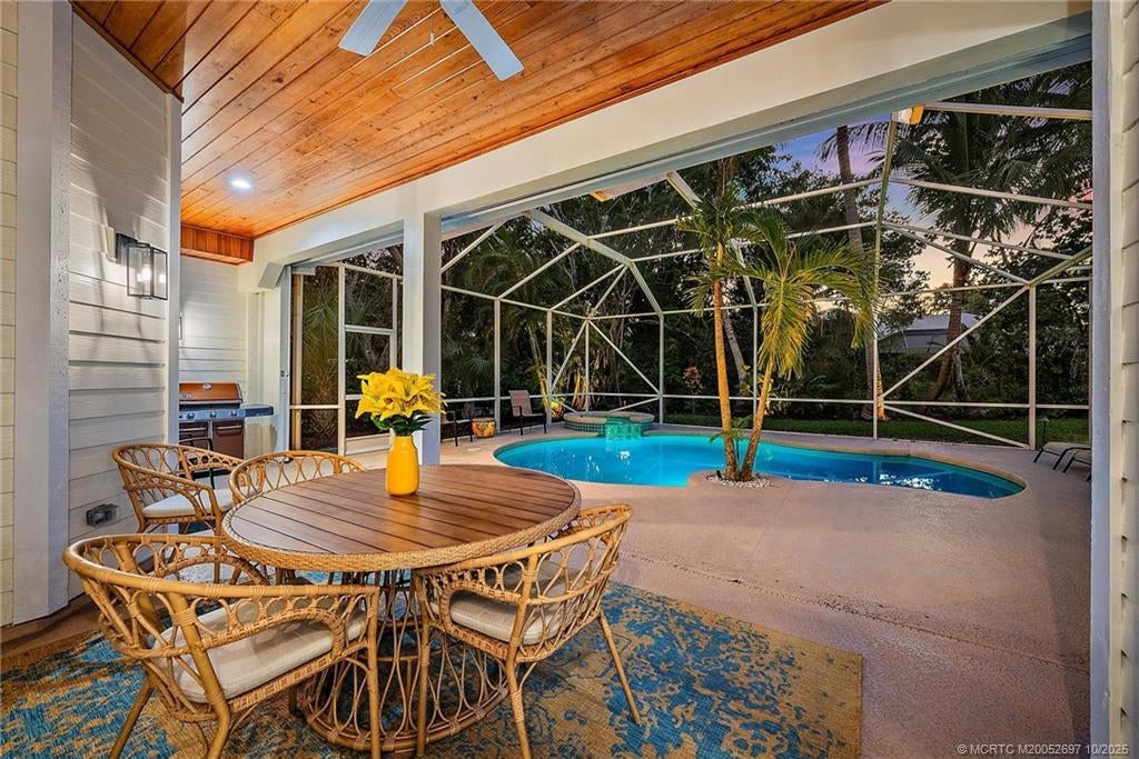 Automatic Chlorination, Concrete, Gunite, Heated, In Ground, Pool Equipment, Pool/Spa Combo, Screen Enclosure