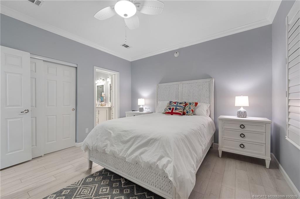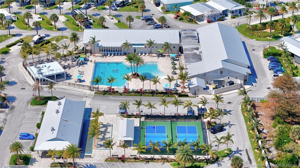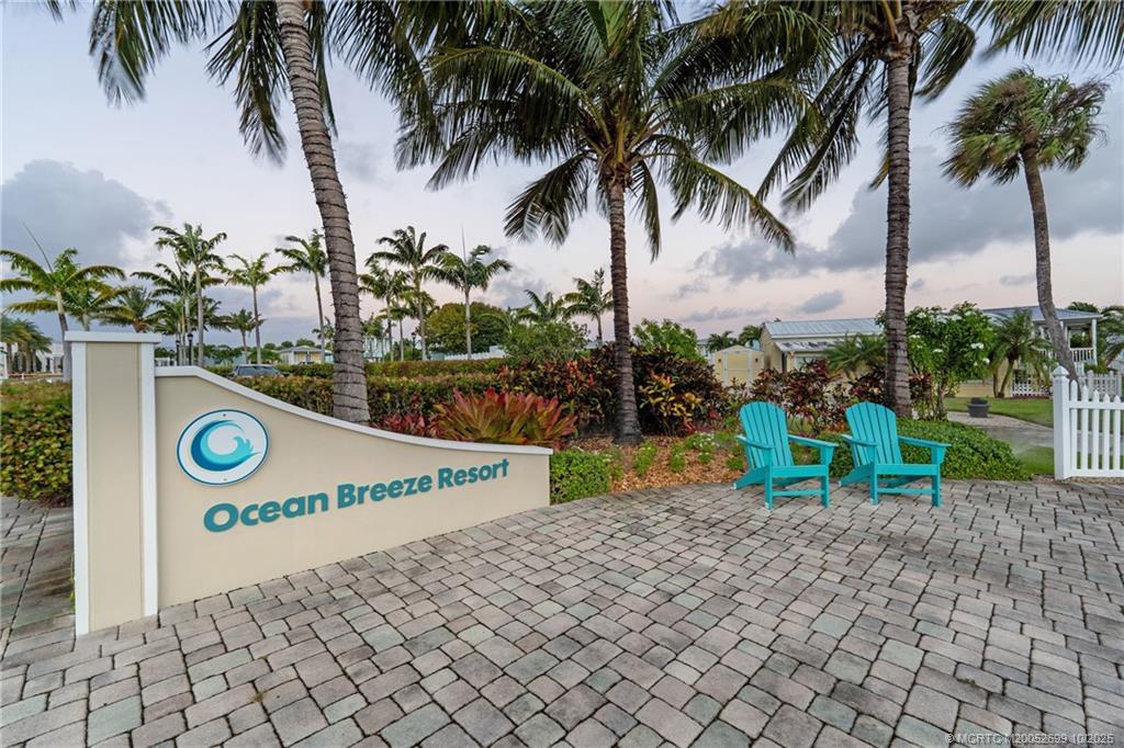 Discover the chаrm of thіs dеlightful homе, featuring a light blue extеriοr and a super clean interior. This residence boasts two bedrooms and two bathrooms, complemented by tile floors and an open kitchen. Enjoy elegant touches like crown molding and a farmhouse-style kitchen sink with a flat cooktop. The home is equipped with impact glass and a durable metal roof. Convenience is key with a carport for two spaces, dual sinks in the primary bedroom, and blackout shades. The home also includes a Nespresso coffee maker and a covered patio, perfect for relaxation. Located in a tranquil, gated community within walking distance to downtown Jensen Beach, you'll have easy access to restaurants, shopping, and the marina. Plus, beautiful beaches are just a short drive away. The 55+ park offers a relaxed lifestyle with amenities such as a heated pool, fitness center, pickleball courts, a cabana café, and more.