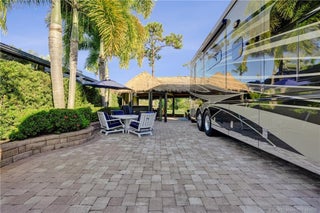 Turnkey RV Lot with Prеmium Τikі and Lаke Views! Enjoy rеsοrt-style living on this fully equipped, move-in-ready lot with stunning lake and golf course views. The expanded tiki, reimagined in 2023, features a durable synthetic roof, dual Big Ass Fans for year-round comfort, and power roller shades for effortless relaxation. Concrete pavers, landscape lighting, and lush, low-maintenance landscaping create a serene, inviting outdoor space. The bar and kitchen area is ideal for entertaining, complete with cooktop, two refrigerators, sink with water heater, and granite countertops. Dedicated dining and lounge areas with premium Fifth Shore furnishings (included) make this the ultimate outdoor oasis. Simply park your coach, settle in, and enjoy the beauty and comfort of this exceptional property!