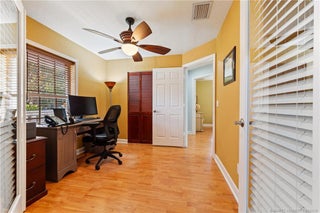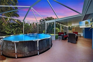 Enjoy Palm City living without the restrictions—NO HOA! This well-kept CBS home, located on a dead-end street, features 3 bedrooms plus a bonus room ideal for an office, den, or guest room. Relax on the charming covered front porch outside, and enter to an open layout with laminate flooring and tile throughout. French doors lead to a covered, screened lanai featuring a small heated pool and a fully fenced backyard. This home is filled with thoughtful touches including an outdoor shower, central vacuum system, phantom screen, and a reverse osmosis water system. The floor plan provides both comfort and privacy, while the spacious living areas create a welcoming flow for everyday living. Located close to downtown Stuart, beaches, shopping, restaurants, top-rated schools, and with easy access to I-95 and the Florida Turnpike, this home offers the perfect blend of comfort, convenience, and Florida lifestyle.