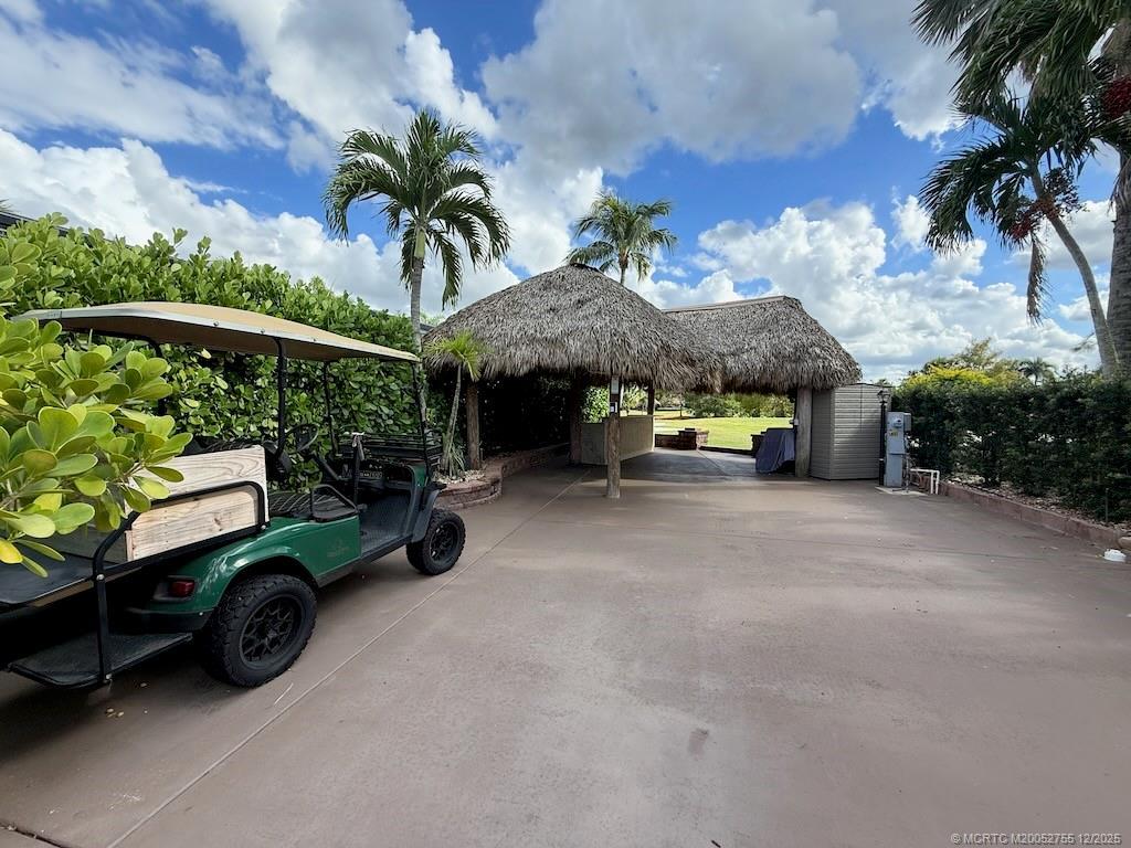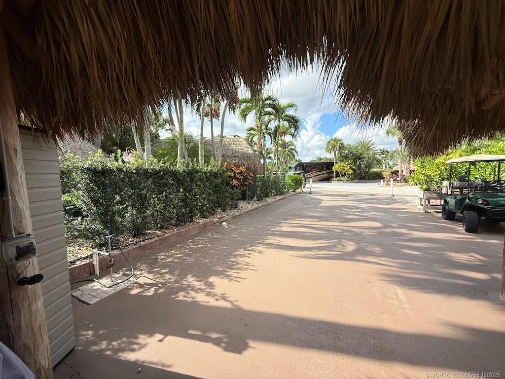 Experience the ultimate in resort living with this oversized 2,640 sq. ft. lot in the highly sought-after MotorCoach Resort St. Lucie West! Perfectly situated on a desirable street, this property offers a rare peninsula location with panoramic views of the golf course and shimmering lake. Wake up to peaceful sunrises on your left, unwind with vibrant sunsets on your right, and enjoy the tranquil beauty of three lighted fountains that make this setting truly one-of-a-kind. The large tiki features a granite-topped custom kitchen—perfect for entertaining—with plenty of space to relax or dine outdoors in comfort. Surrounded by mature, lush landscaping for added privacy and charm, this meticulously maintained lot captures the best of Florida’s outdoor lifestyle. A gas golf cart is also available for separate purchase, making it even easier to explore the resort. This property is a must-see for anyone seeking beauty, serenity, and resort-style living!