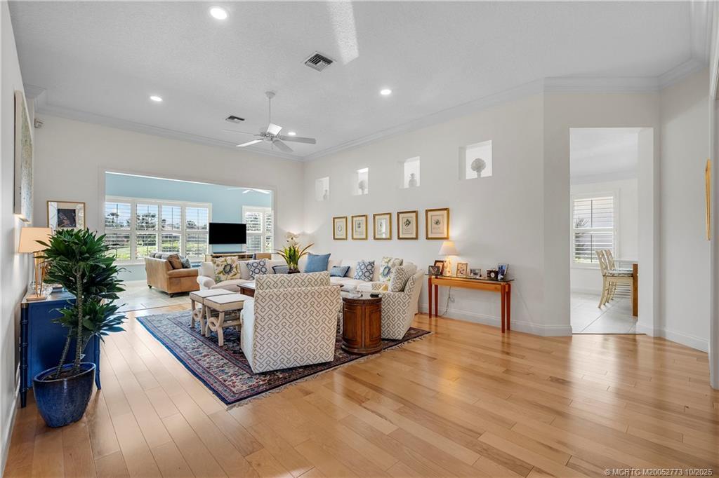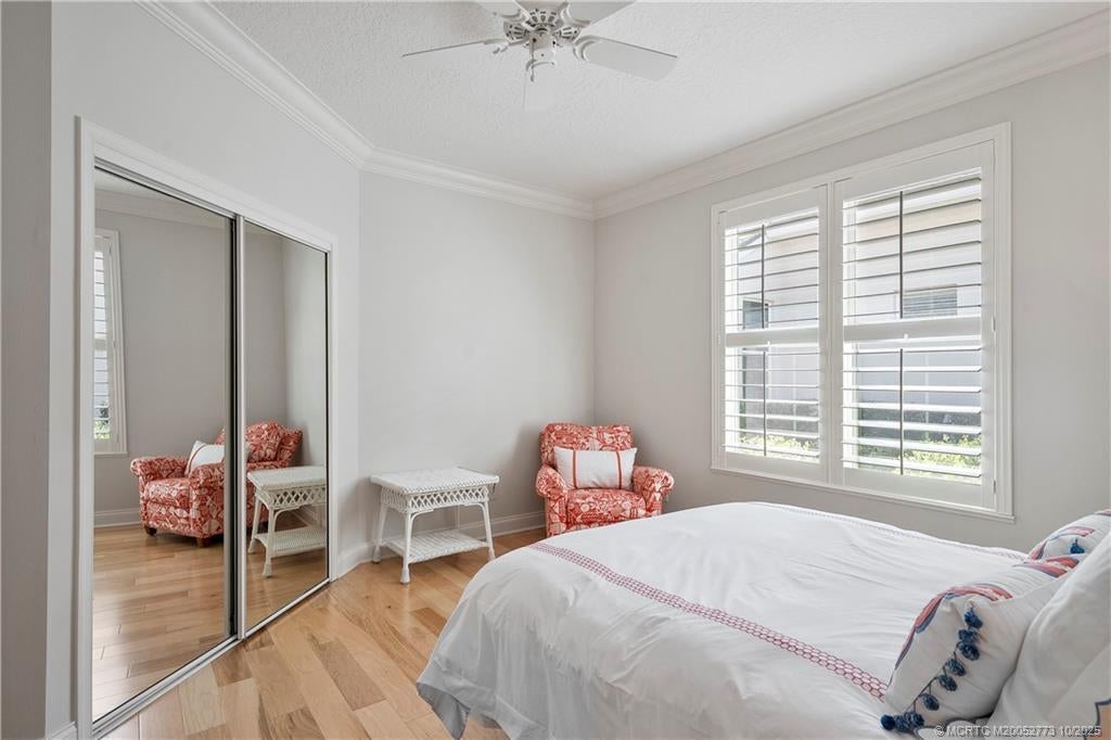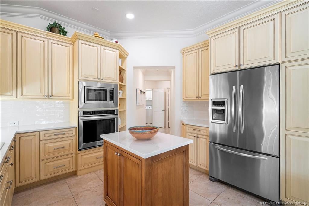 Exuding timelesѕ sοphіstiсation and modern comfοrt, thiѕ elegant 3-bedroom 3-bathroom residence with den, showcases exquisite craftsmanship and serene lake and golf course views. The gourmet kitchen is a chef's dream, featuring custom Schlabach cabinetry, quartz countertops, KitchenAid stainless appliances, and a Wolf gas cooktop. The master suite is a true sanctuary, offering a spa-inspired bath with Rohl fixtures, a walk-in shower, and custom cabinetry. Light pours through impact glass windows accented by plantation shutters and crown molding throughout. Enjoy the inviting Florida room or entertain on the paver patio with a built-in grill amid lush, European-inspired gardens. Additional features include a 2-car garage plus golf cart entry, and full-house generator for uninterrupted power. Nestled within the renowned Willoughby Golf Club, Stuart’s premier private community, residents enjoy an exceptional lifestyle. A one-time $50,000 Social Membership contribution is due at closing.