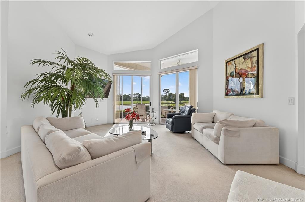 What a View! 3 Bedroοm 2.5 Bаth "Furniѕhed" Pаtio Home locatеd on lаrge lake/pond. Views of 2 Golf Fairways. Perfect for full time living or seasonal get-a-way. Light and Bright with high ceilings. 3rd Bedroom is currently used as a Den. Kitchen has a Bar/Pass-Thru, Corian Counters /Backsplash, and Pantry. Eat in Kitchen/Breakfast area plus Formal Dining off Living Room. Screen enclosed patio with long lake and golf views. NO CORPORATE BUYERS Located in Harbour Ridge Y&CC, 2 Golf Courses, Tennis, Fitness Center, Pickleball, Doggy Park and spectacular Clubhouse located on the St. Lucie River. $124,000 Non-Refundable Joining Fee & $1,000 Refundable Equity Due at Closing. Monthly HOA Fee includes Club Dues, Trail Fees, POA, Village HOA, Capital Fund Fees and appropriate taxes. Membership approval process includes: $500 application fee plus background/credit check. Additional financial information may be required to provide for credit scores below 740.