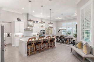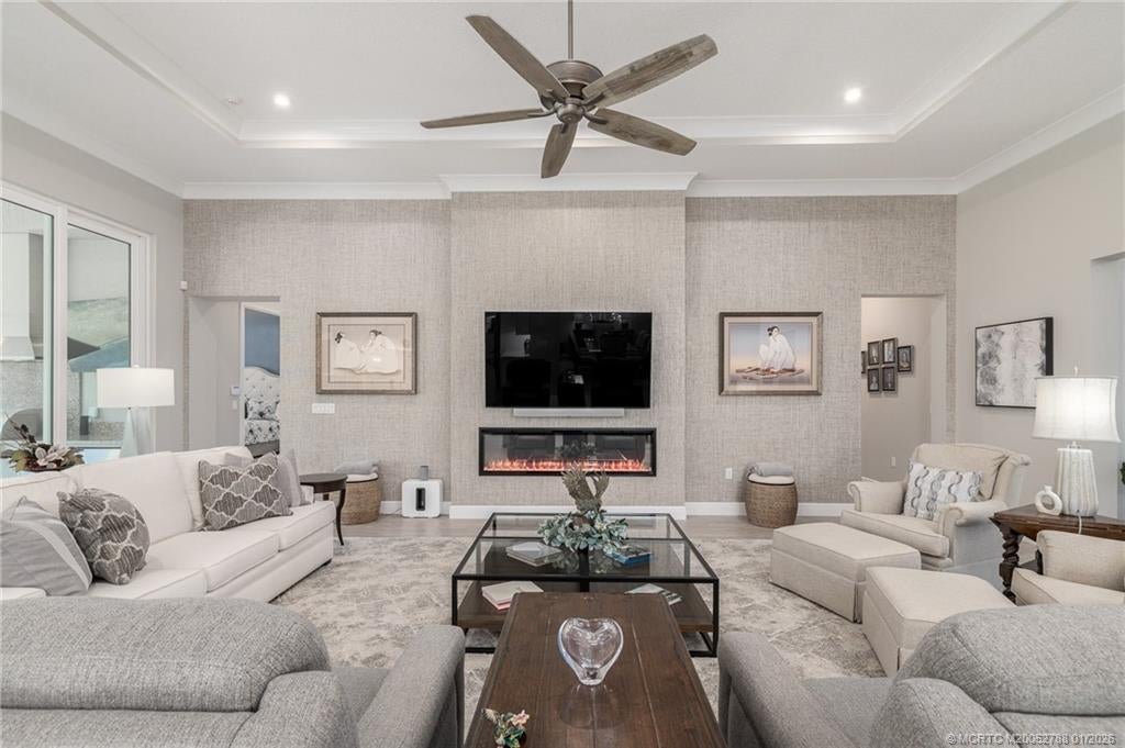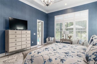 Welcome to Langfοrd Lаnding, аn exсlusive gated enclavе offеring luxury living & direct boating access. This home includes a 30’ boat slip at the on-site marina. The open-concept layout creates a seamless flow through the main living areas, highlighted by coffered ceilings, a modern electric fireplace, & elegant designer finishes. The chef’s kitchen stands out w/ a large waterfall island, premium SS appliances, double wall oven, a butler’s pantry, & stylish pendant lighting–perfect for entertaining. The primary suite offers a stunning freestanding soaking tub, oversized walk-in shower w/ dual shower heads & a massive custom-built closet. Outdoor living impresses w/ a covered lanai, modern summer kitchen, & heated pool w/ water feature, all oriented toward the tranquil backyard preserve. Additional highlights include bold designer powder rooms, a versatile guest room w/ custom built-ins & desk, climate-controlled garage, & a well-appointed laundry room w/ sink & storage.