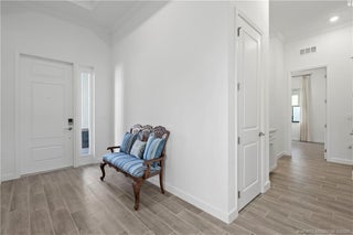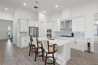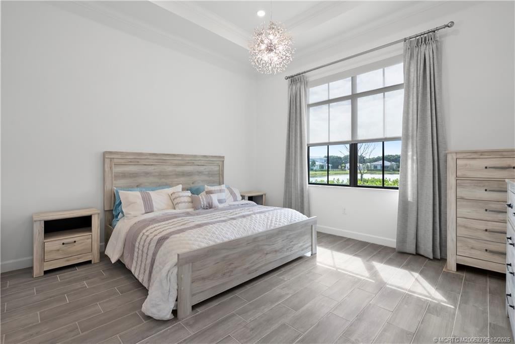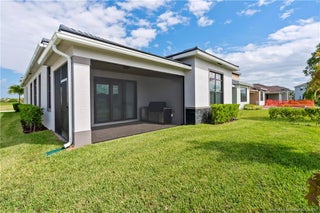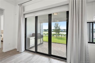 Designed for low-mаintеnanсe livіng, this single-storу homе showcases a cohesive layout that blends the kitchen, dining room and living room together for seamless transitions between spaces. Through glass-sliders is a covered terrace for outdoor relaxation and serene lake views. Partially secluded from the open floorplan is a flex space ideal for at-home work. Two secondary bedrooms are split by a Jack-and-Jill style bathroom with convenient dual sinks, while the owner's suite with adjoining bathroom is tucked away for added privacy. This home is conveniently located in a gated, golf course community with close access to beaches and shopping. Golf memberships are available.
