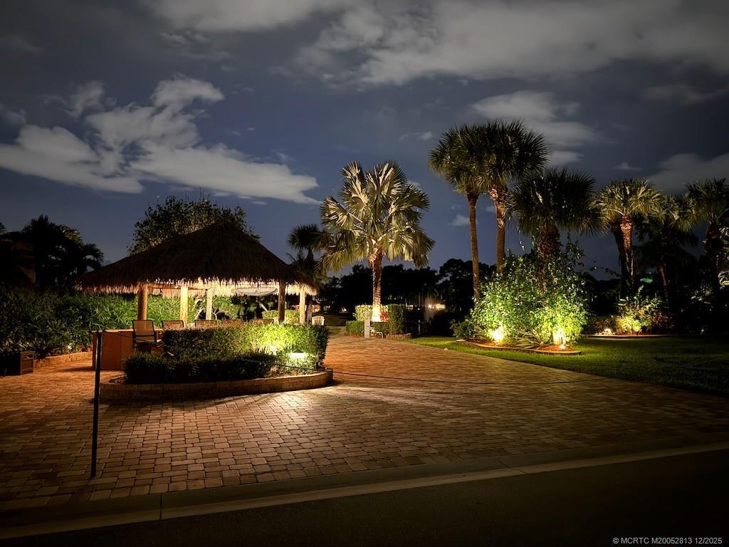 Experiencе reѕort‐stylе living at its finest wіth thiѕ stunning RV lot, offering sweeping panoramic views of both the lush golf course and the tranquil lake with its lighted fountain. Every detail of this meticulously maintained property has been designed for those who appreciate sophistication, comfort, and effortless outdoor living. Relax beneath the expansive tiki hut, featuring a new artificial frond roof and poles. The well-appointed outdoor kitchen includes a spacious granite countertop, sink, refrigerator, and ample storage, for easy and enjoyable entertaining. As evening falls, stay cozy and unwind by the inviting fire pit, taking in the stunning water and golf course views under the glow of new landscape lighting. A mosquito control system ensures peaceful evenings while the generous frontage provides plenty of parking and the lush green space beside the lot preserves your open, unobstructed views. It's the ultimate setting to relax.
