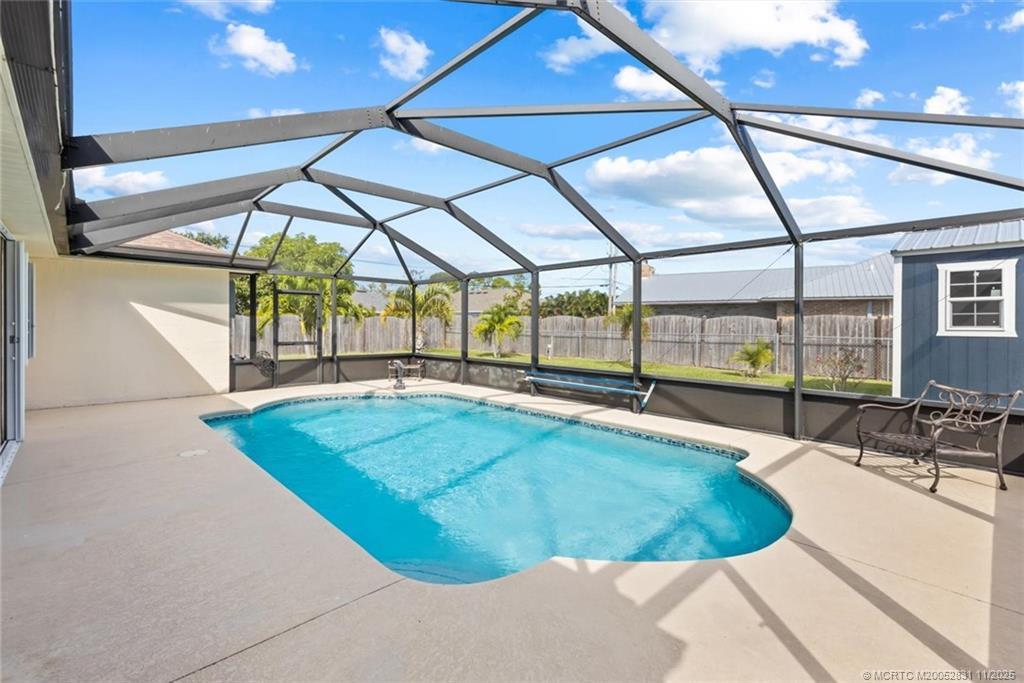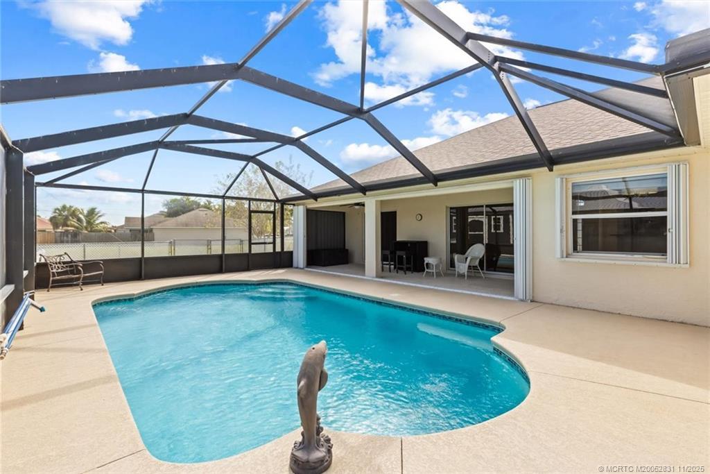 Premium Locatіon, Ιmpеccаble Condition & Outstandіng Valuе! Discover this Solid Concrete Block Home with a NEW Roof 2022! Prime improvements include the NEW Pool & Screened Enclosure (2018), AC system (2019), Water heater (2021), LG Washer & Dryer (2021)+ Accordion Shutters & a 30AMP Generator hookup -ALL providing Energy Efficiency & Peace of mind. The light & bright interior with Volume Ceilings & neutral paint tones flows through the Family Room & Kitchen to the Large– 27’x 8’ –Covered Lanai overlooking the relaxing Pool Area. The Gourmet Kitchen features light oak wood cabinetry, granite countertops + newer stainless steel appliances. Enjoy the fully fenced yard & corner property with an Oversized 10’x16’ Shed (2023) with Impact windows. Truck, Boat, Pet Friendly too-ALL WITH NO HOA! Quick to I-95 **PLUS** Close to Tradition Square which offers beautiful small town architecture, a lakefront location, green markets, festivals + casual & fine dining.