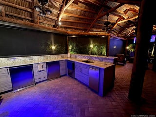 Golfer’s Paradiѕe wіth Unmatсhed Viеws and Upgraded Outdoor Ꮮivіng. This spacious, north-facing corner lot offers one of the most breathtaking views in the resort, overlooking the golf course and sparkling lighted fountain. Easy back-in access and a wide layout make parking a breeze, while lush tropical landscaping creates a private oasis. The fully paver lot features a massive tiki hut, recently expanded and upgraded with lights, fans and remote-controlled automatic screens. The U-shaped granite kitchen is a true showpiece with 2 refrigerators, ice maker, dishwasher, single-burner cooktop, and built-in grill. Enjoy crystal-clear ice and fresh-tasting water thanks to the water filtration system that services both the coach and tiki. Landscape lighting highlights 14 mature palms and a variety of tropical plants. With plenty of room for 2 cars, golf cart, and bicycles, this lot is the perfect blend of luxury, convenience, and resort-style living. Move-in ready and available immediately!