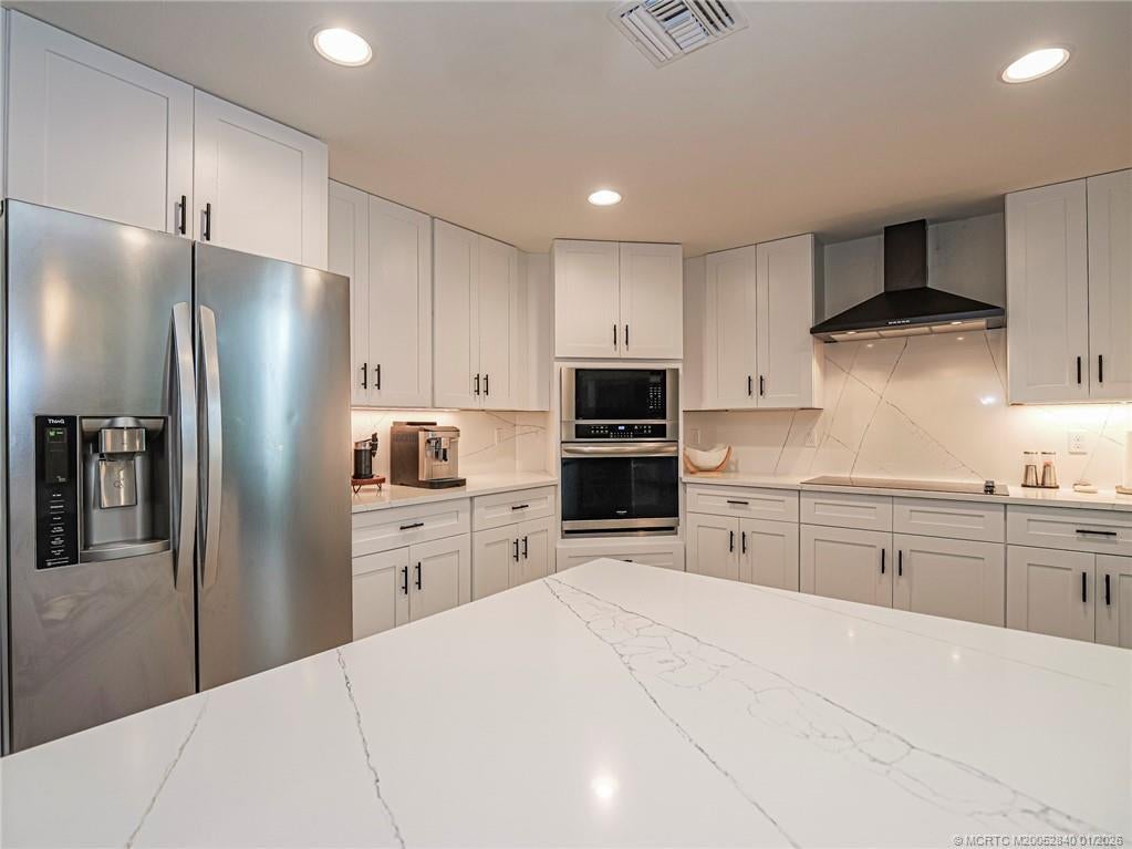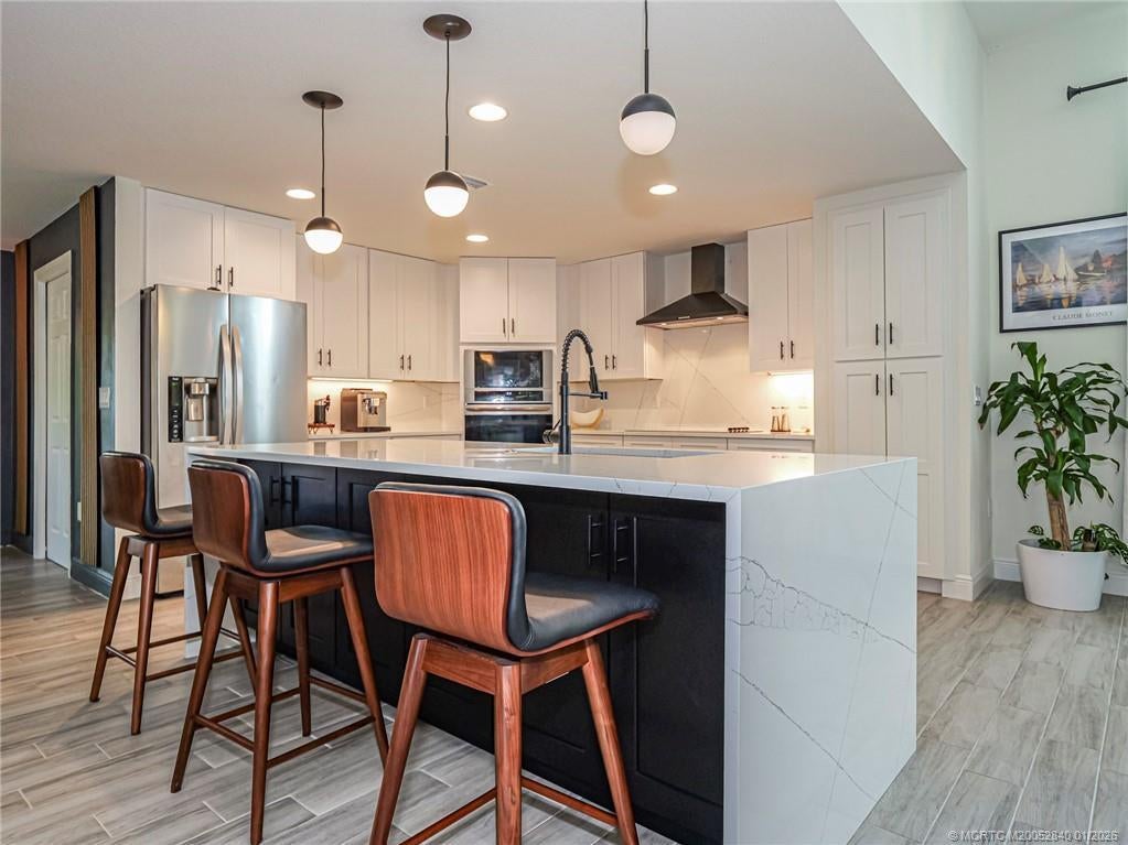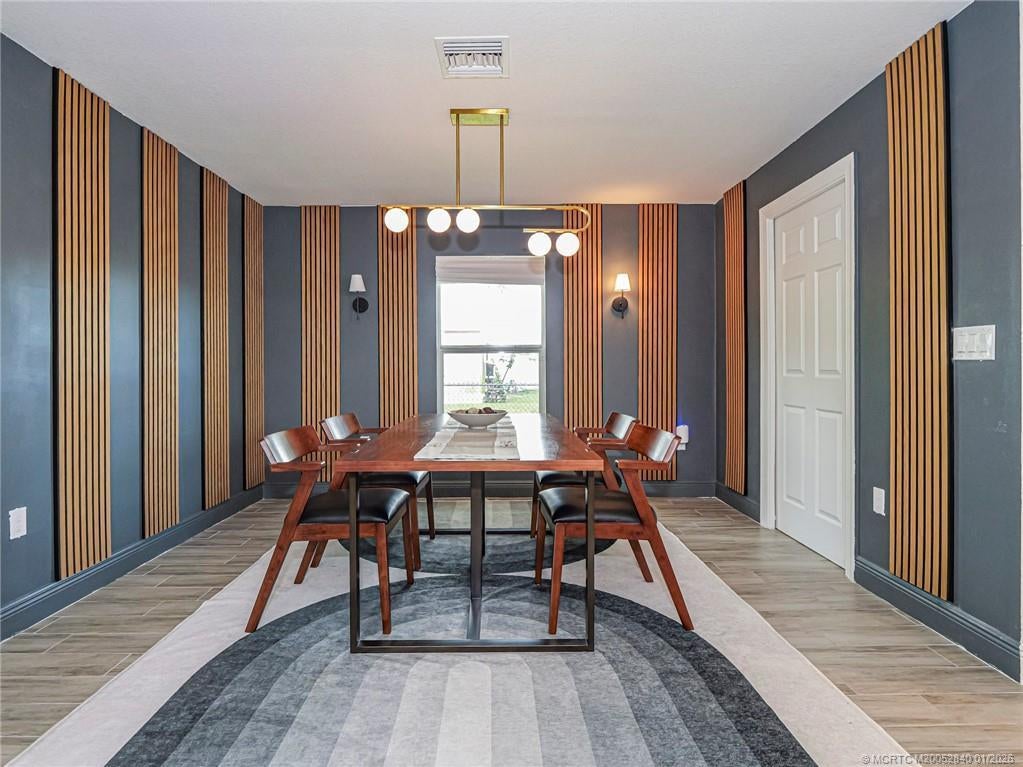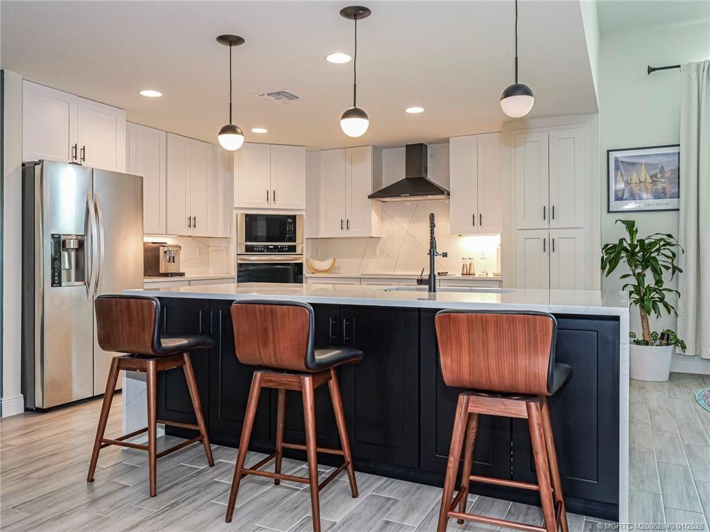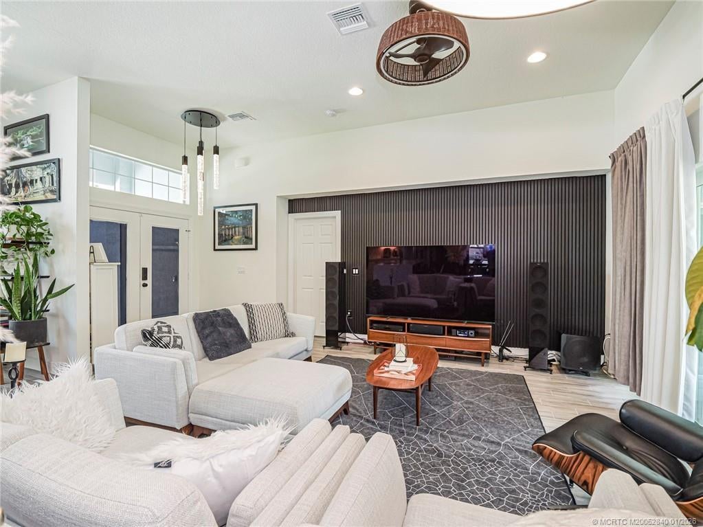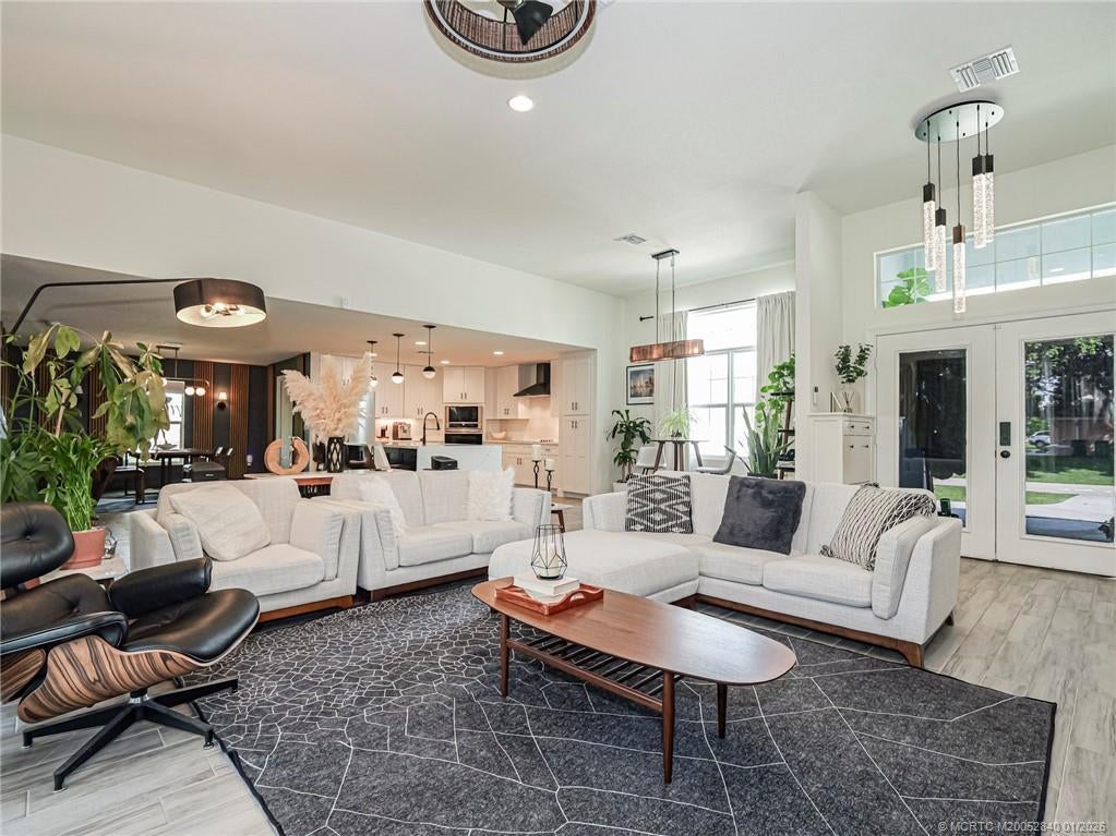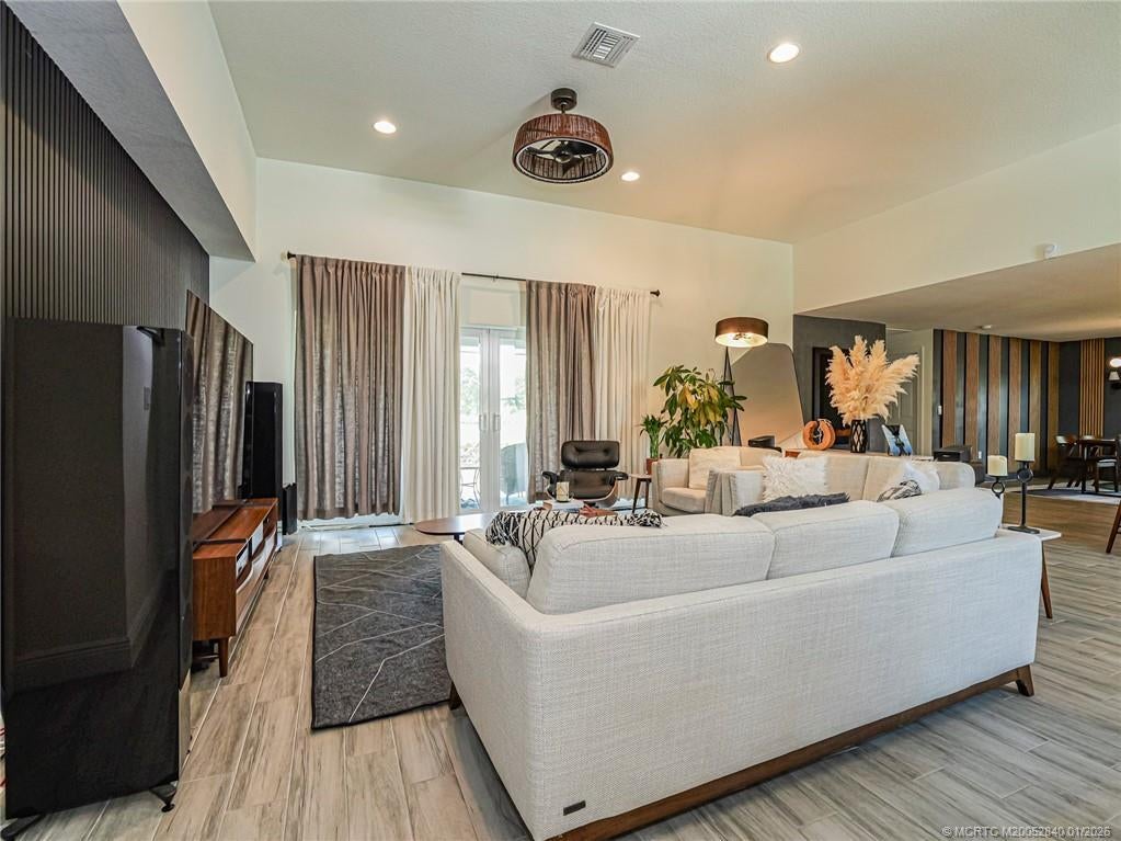 PRICE IMPROVEMENT! Like new, move-in ready, stunning WATERFRONT home is like an advertisement for HOME & DESIGN! This 3BR/2BA CBS home features a metal roof, impact windows & doors & modern plank wood tile throughout. Enjoy a gorgeous recently renovated chef's kitchen with waterfall quartz countertops, wall oven & microwave plus ample workspace- perfect for entertaining. The open floor plan flows beautifully, offering bright, spacious living areas featuring gorgeous modern light fixtures & accent walls. The split bedroom layout includes guest rooms w walk in closets & beautifully updated bathroom. The owner's suite features a tray ceiling & huge updated en-suite w soaking tub. Relax outside on the covered patio w tranquil water & preserve views for ultimate privacy. Whether relaxing or hosting friends, this home delivers the perfect blend of luxury, function & serenity- all in a desirable area of Port St Lucie.