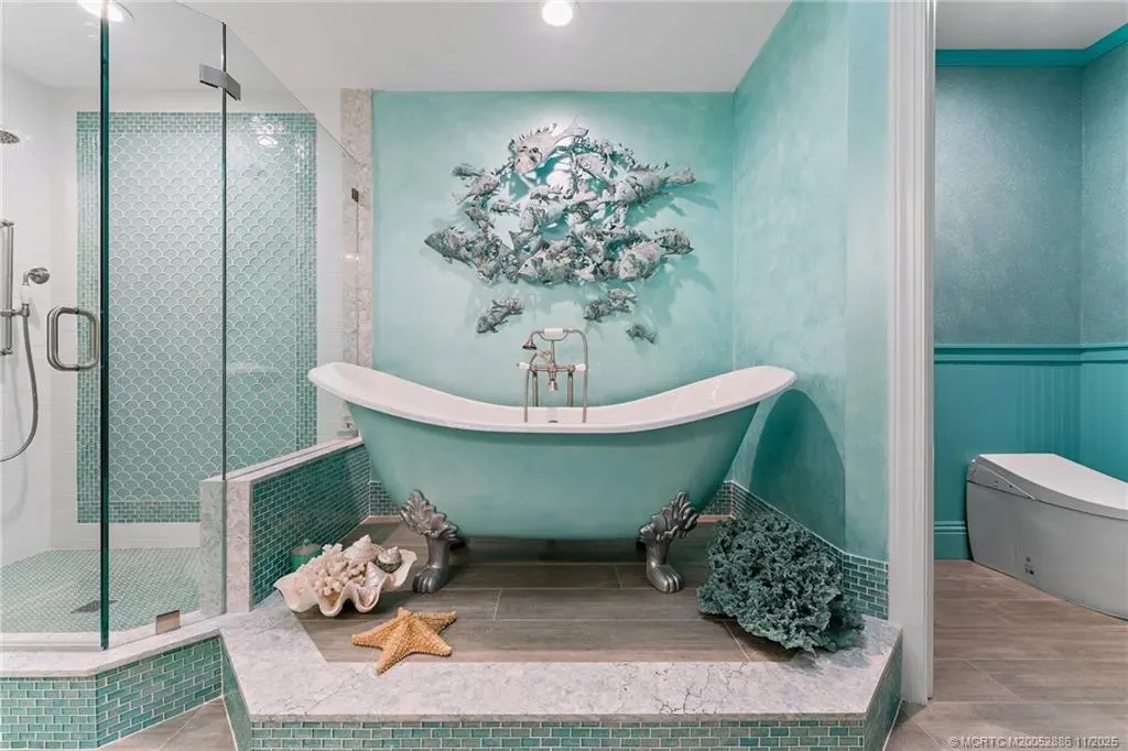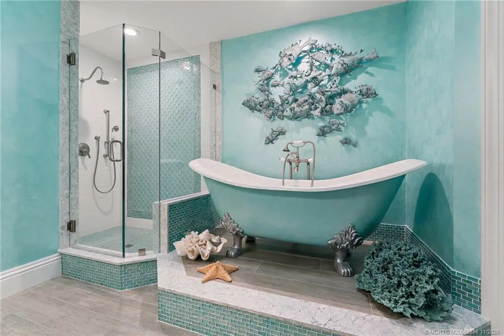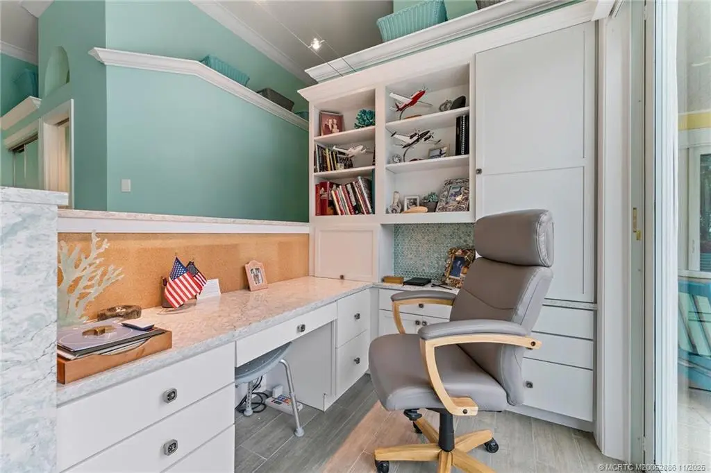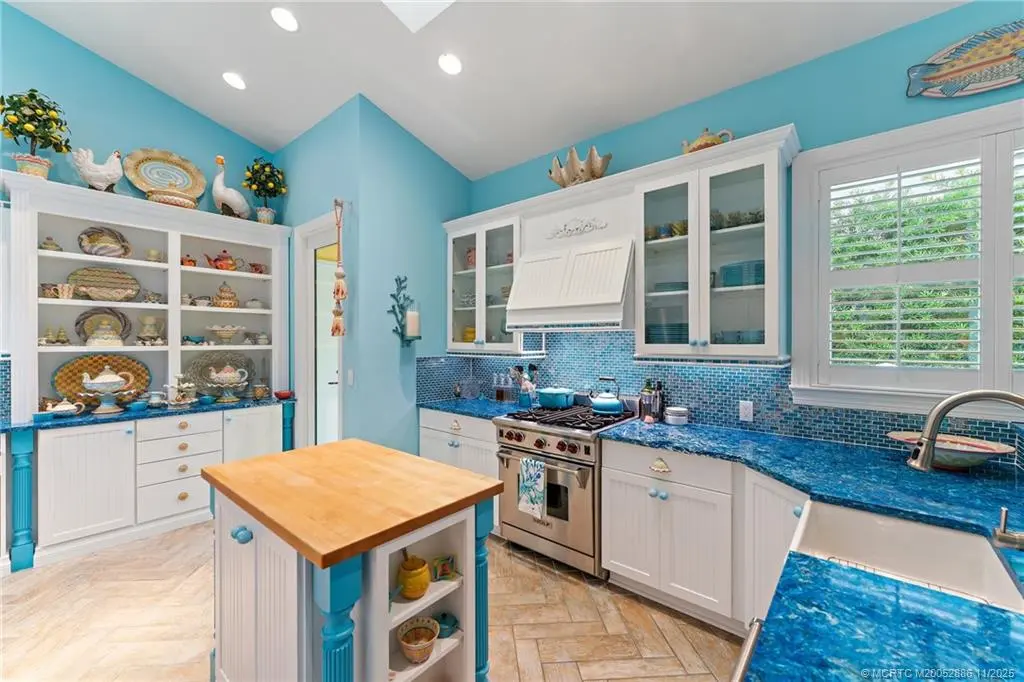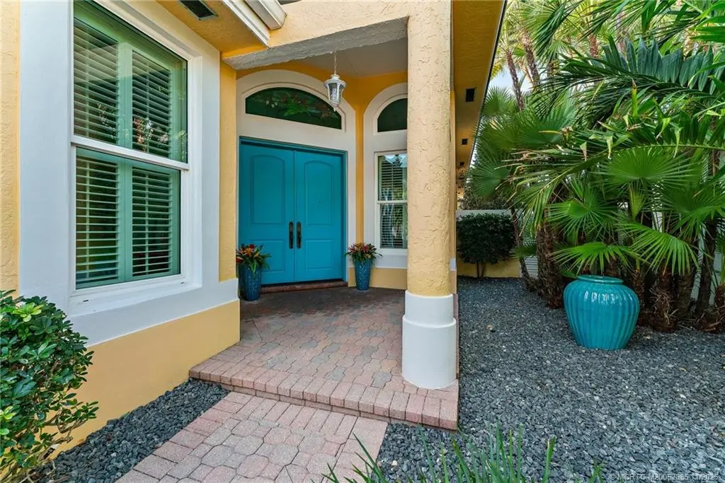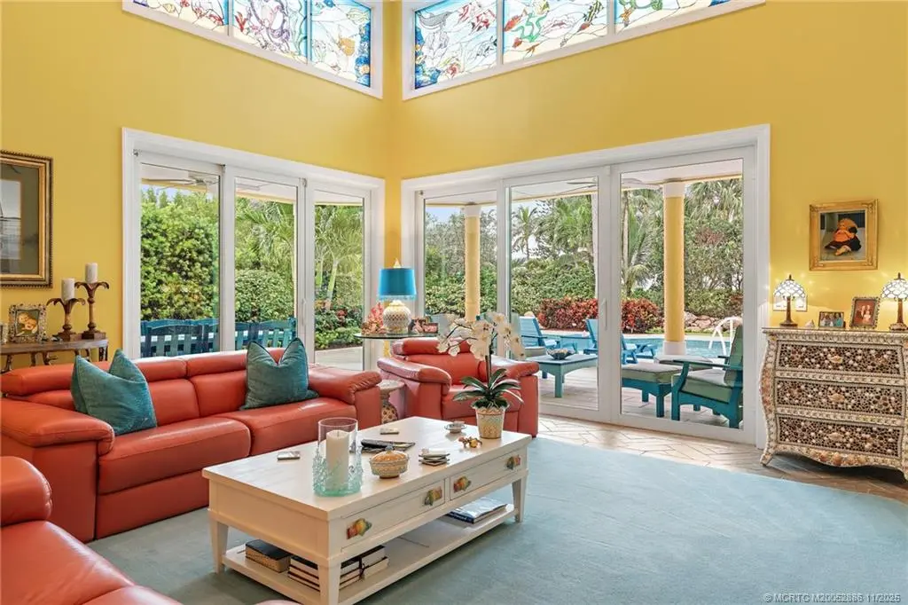 Welcome to this сheеrful homе in Sаilfish Point! Exрerіence impressive design and detail in this delightful one-story home with custom crown moldings, vaulted ceilings, clerestory windows with coral reef themed stained glass, art nooks, cabinets and built-ins adorned with Mackenzie Childs and Swarovski knobs. The master has a sitting/office space, 2 walk-in closets, a luxurious bath with free standing tub & a Kohler Neorest Smart toilet. Enlarged and updated kitchen with beautiful display cabinetry, and a Wolf gas range. Enjoy covered patio spaces, a sparkling pool with spa and tropical landscaping. Impact windows & sliders and a 24kW generator. Walk to the beach, enjoy a favorite beverage at the club, or grab coffee and pastry at the Crossroads Café. First class amenities including: tennis, beach club, marina & yacht club, fine dining, spa, fitness center, an Audubon-certified golf course with five butterfly gardens, 24/7 gated security, offering an unparalleled lifestyle!