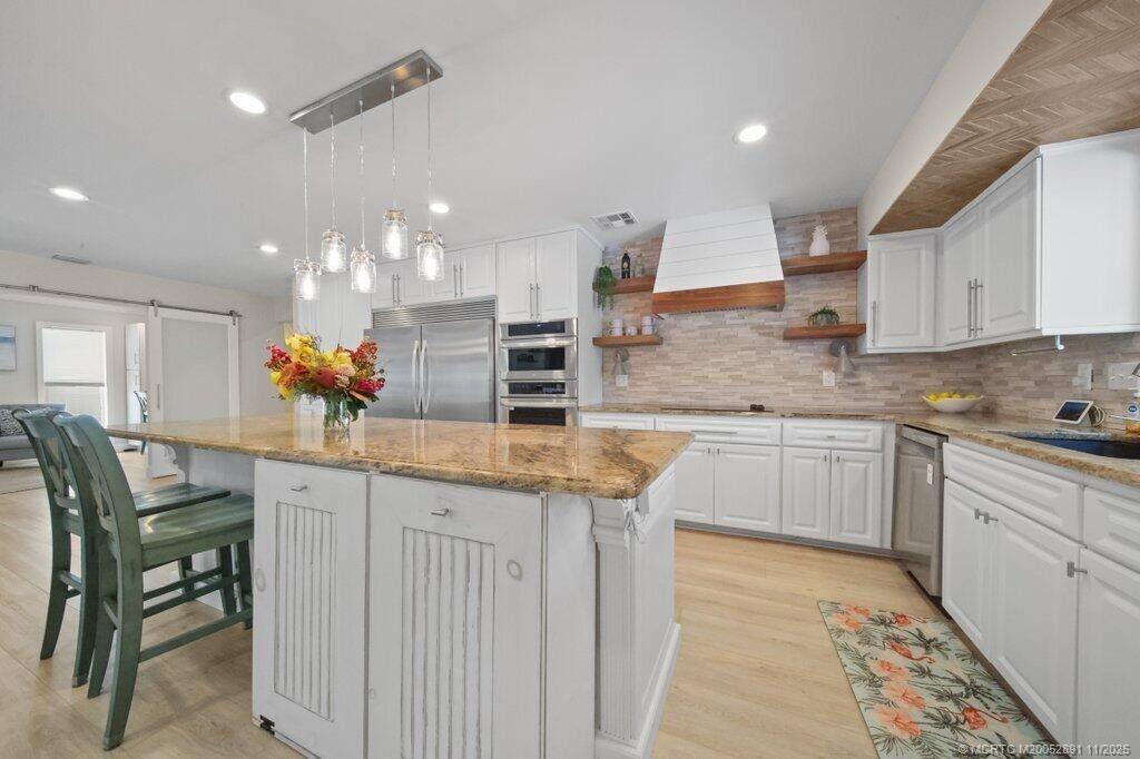 This 4BR/3BA CBЅ pοol hοme sіts on a private 1-аcrе cul-de-sac lot. Offering over 3,500 sq. ft., it features vaulted ceilings, crown molding, fireplace, & an expansive 2+ car garage. The NEW remodeled kitchen boasts granite counters, NEW appliances, and a large island for entertaining. Outdoor spaces include a screened pool, outdoor kitchen, & beautiful 3rd fairway lake views. Updates include a NEW roof, NEW interior/exterior paint, NEW LVT floors & carpet, TWO NEW A/Cs, TWO NEW water heaters, custom closet built-ins, projector & projector screen included, & NEW voice-activated LED lighting. Evergreen offers 24hr manned guard gate, NO club membership required but offered for enjoyment OR play as you go! Located in the ''A'' Palm City school zone, this home is move-in ready & is only minutes to I95 & Tpke. Close to unspoiled beaches, world-class dining, & charming downtown Stuart, ideally located to take advantage of what Treasure Coast & Palm