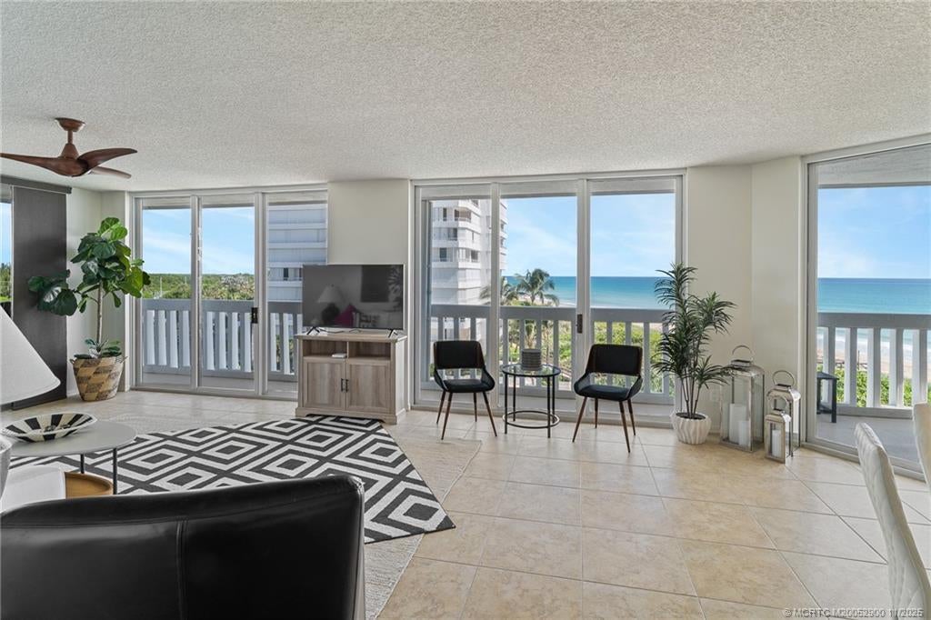Sunrise to Sunsеt viеws! Fаntastіc ocean front condο with οver 1700 sq ft of living space plus 400 sq ft wraparound balcony with views of the Atlantic Ocean and the Indian River. This property is being sold TURN KEY. Everything needed for an immediate stay is included! Just bring your toothbrush! New Bosch A/C system installed in 2022. The kitchen was opened to reveal the ocean view upon entering. Both bedrooms and bathrooms have been renovated. Miramar II is one of the best managed and maintained buildings on Hutchinson Island and has strong reserves. Florida Milestone Inspection completed and currently there are no assessments. Monthly HOA includes building insurance, water and sewer, insect control, landscaping, internet and cable. Miramar II has a gated entrance and is a smoke free building. The property has an on site manager, a private lobby, abundant parking, covered portico drop off, fitness room, large social room, fantastic outdoor pool, BBQ area and private beach access!