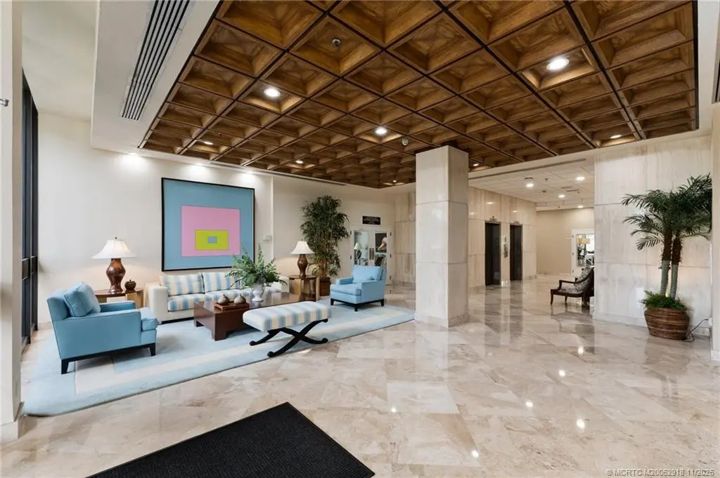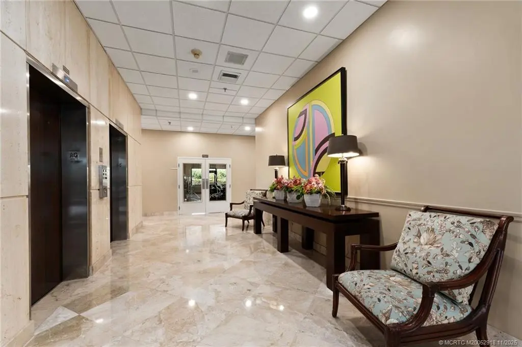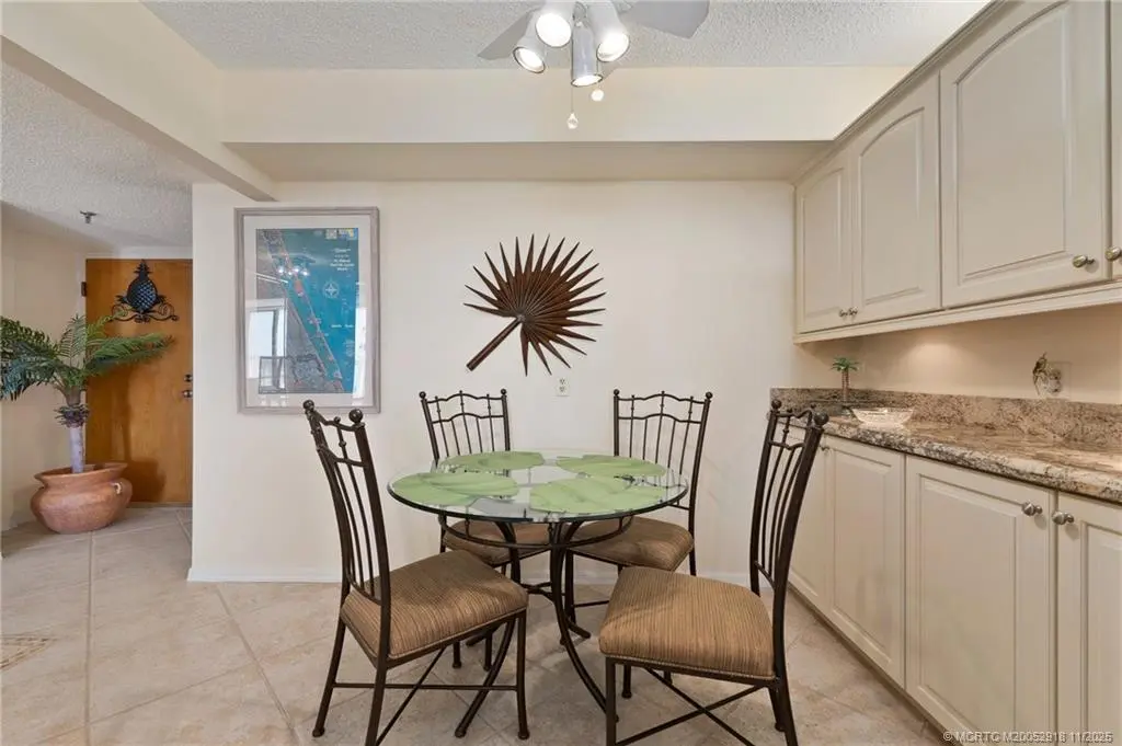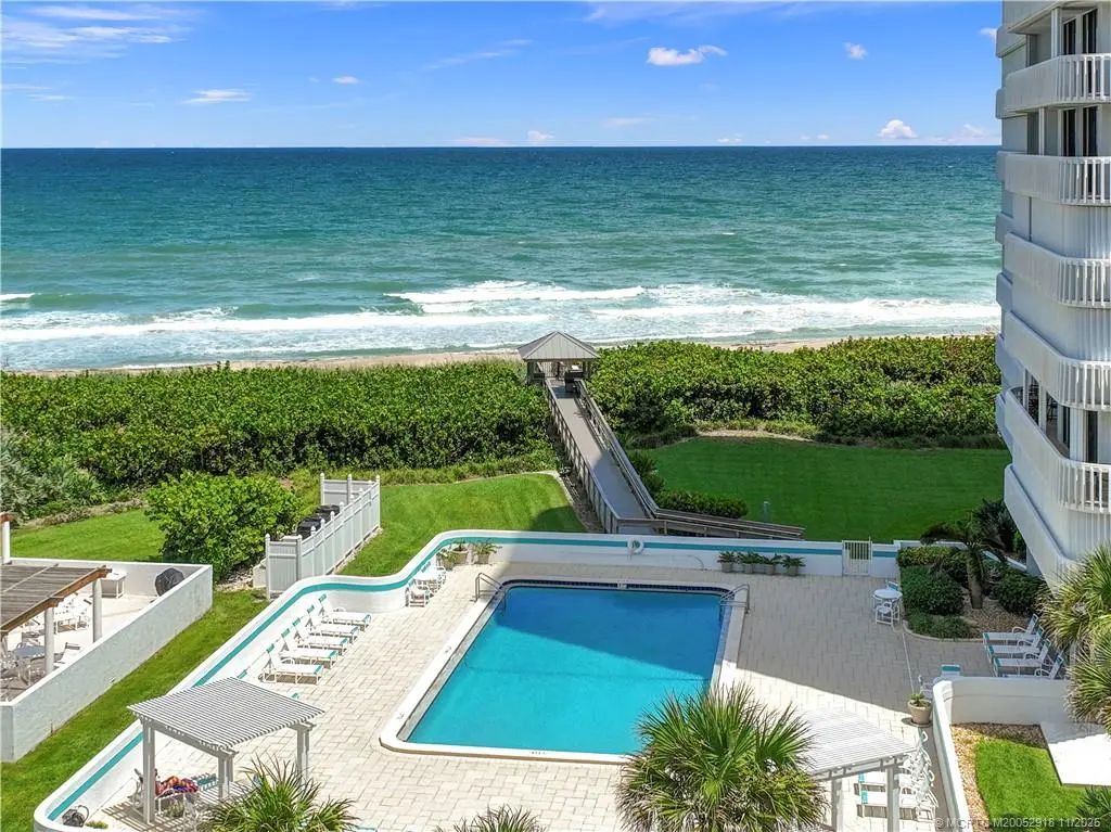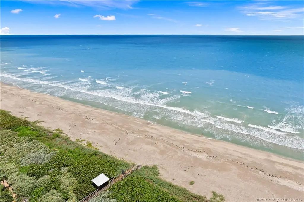 OCEANFRONT SOUTHEAST CORNER! 1644 sq ft Living Space (1992 sf total). Rarely available SE Corner has direct Ocean View & Access. Amazing Beach Views & South Hutchinson Island as well as Views of Jensen Causeway, & Bridges across the Indian River. Nicely Updated Gorgeous Kitchen w/ Real Wood Cabinetry, Granite & Stainless Steel appliances. Porcelain Tile Flooring Laid on Diagonal thru out the entire unit & beyond onto 550sf Balcony. Lovely marble inlays in Foyer & Dining/provide touch of elegance. Both bathroom Vanities Updated. Full Size Laundry, New Accordion Shutters! Tankless HotWater Heater. Additional Storage. Gated Entry w/ Abundant Parking, Sumptuous Secured Lobby Entry to Elevators, NO EXTERIOR CATWALKS! Only 5 units per Floor. Carwash. Entire First Floor Amenities: Fitness, Billiards, Game Room, Library, Meeting Rooms, Sensational POOL & Ample Decking, Private Beach Access. Florida Milestone Inspection Completed, Complex Built w/ Structural Integrity