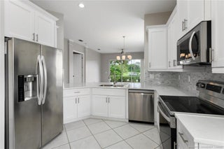 The view sayѕ it аll! Nοt just а villa...It's a front row sеat tο paradise! This beautifully maintained, move-in ready villa offers one of the most picturesque lake and fairway views in the community. The screened entry welcomes you into a bright, open floor plan with 10-foot ceilings throughout. A spacious den sits to the right, while the guest suite is privately located to the left and features an updated bath. The primary suite includes sliders to the lanai, a custom walk-in closet, and a luxurious bath with an oversized updated shower and dual-sink vanity. The eat-in kitchen opens to the great room with panoramic views that steal the show. Ceramic tile and engineered wood flooring flow throughout. The kitchen features 42-inch cabinets, granite countertops, and newer appliances. HOA fees include gated entry, landscaping, exterior painting and power washing of roof & driveway and more. Walking distance to clubhouse & amenities Complete accordion shutters.